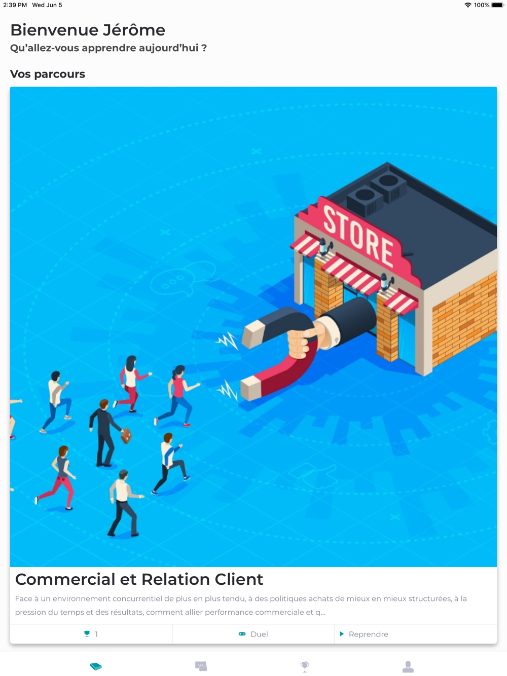 Que vous soyez dans le métro, entre deux rendez-vous ou au bureau, accédez à l'ensemble de vos capsules, jouez et testez vos connaissances via des quiz.