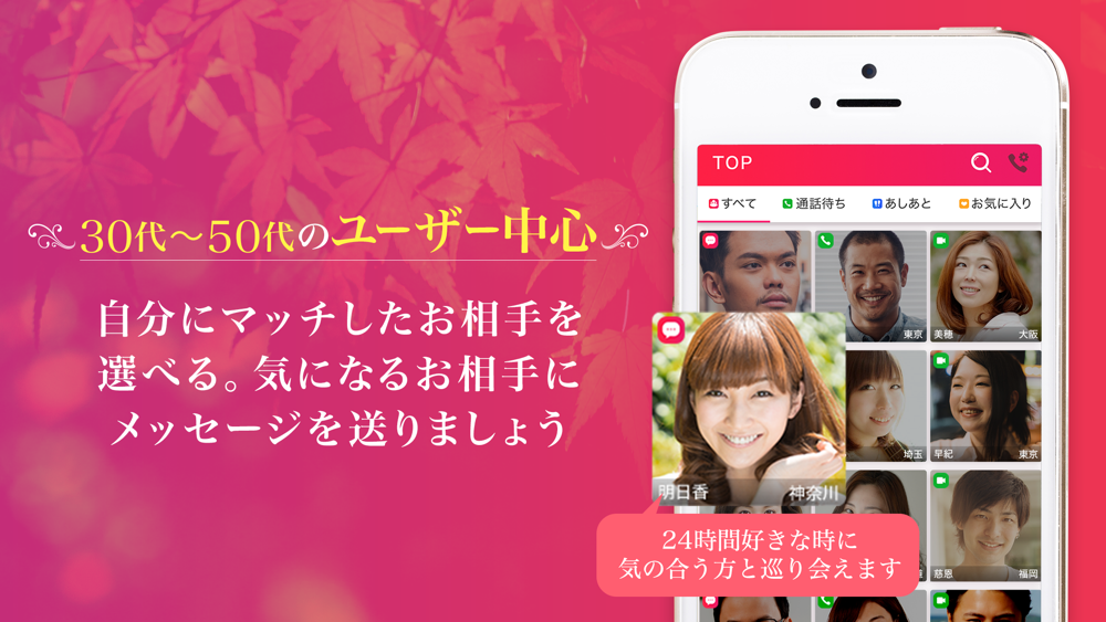 Embi(艶美)では24時間いつでも、チャットや電話でいろんな方とやりとりができるアプリです。