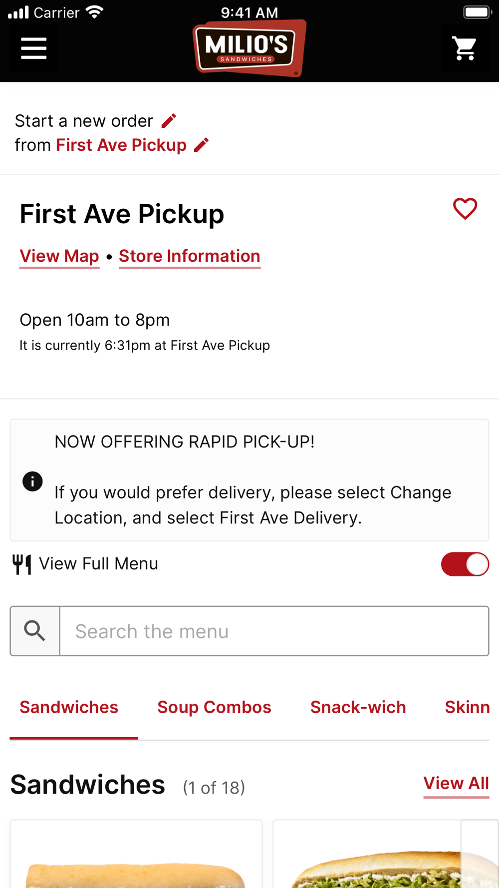 Order your favorite Milio’s sandwiches right from your phone! Our new Milio's app makes ordering on the go easier than ever. You can explore and order from our entire menu of delicious sandwiches, sides, drinks, desserts & catering options! Find a Milio’s nearby and we’ll even save your favorite sandwich orders and locations. We know you’re gonna love it!