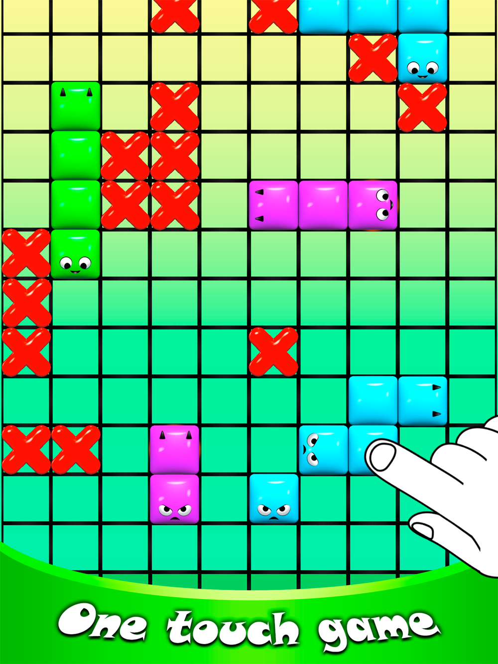 Simply tap your finger on the squares of snakes before they reach the bottom line of the screen earning the highest score possible. Lots of fun and action.