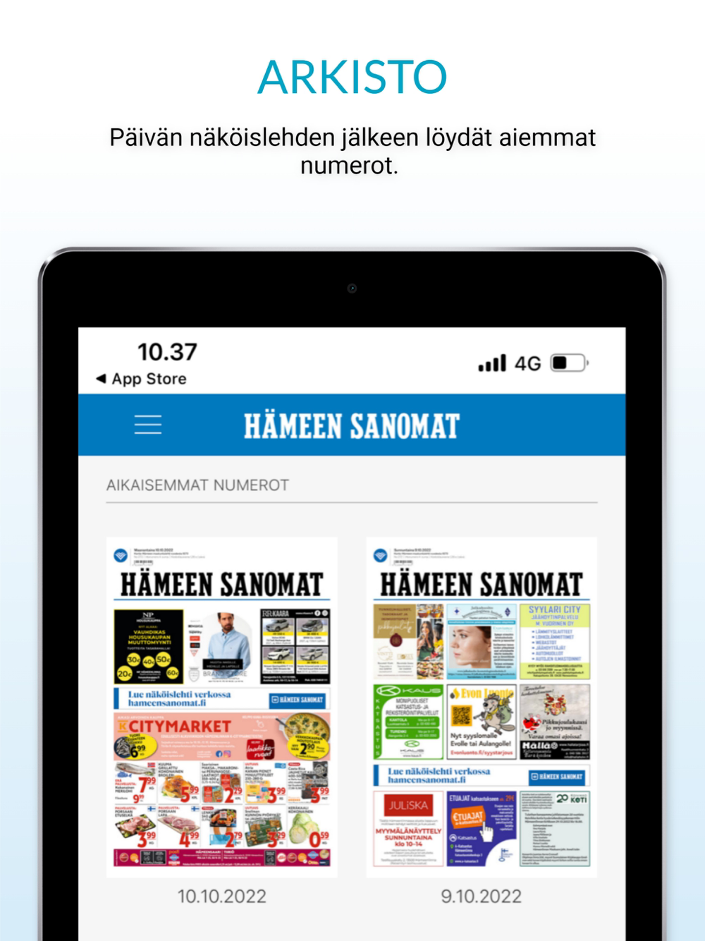 Sovellus sisältää uusimman julkaistun näköislehden sekä lehtiarkiston ja liitteet. Voit lukea sovellukseen lataamiasi lehtiä myös ilman verkkoyhteyttä missä vain ja milloin haluat.