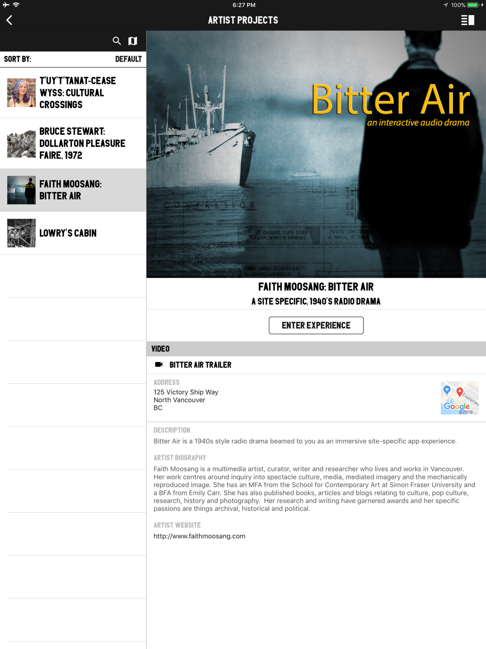 The Polygon Gallery exhibits contemporary art with a focus on photography, emphasizing contemporary Canadian work within the context of historical and international art. Operating as Presentation House Gallery for forty years, the organization presented more than 300 exhibitions, earning a reputation as one of Canada’s most adventurous public art institutions. Some of the most important local and international artists have been featured - from acclaimed Vancouver photographers Stan Douglas and Fred Herzog to world-renowned artists Ansel Adams and Andy Warhol. Whether you’re new to The Polygon or a passionate Member, visiting as a family or with your school class, the app is a great way to see what’s happening at The Polygon now, wherever you are. The app also features THE POLYGON OUTSIDE – the Gallery's platform for newly-commissioned digital artist projects. The first series of these interactive audio-visual projects animate sites along the North Shore Spirit Trail, a fully accessible greenway that will extend from Horseshoe Bay all the way to Deep Cove. The art works hosted on this mobile app can provide a unique perspective on the history of their particular site.