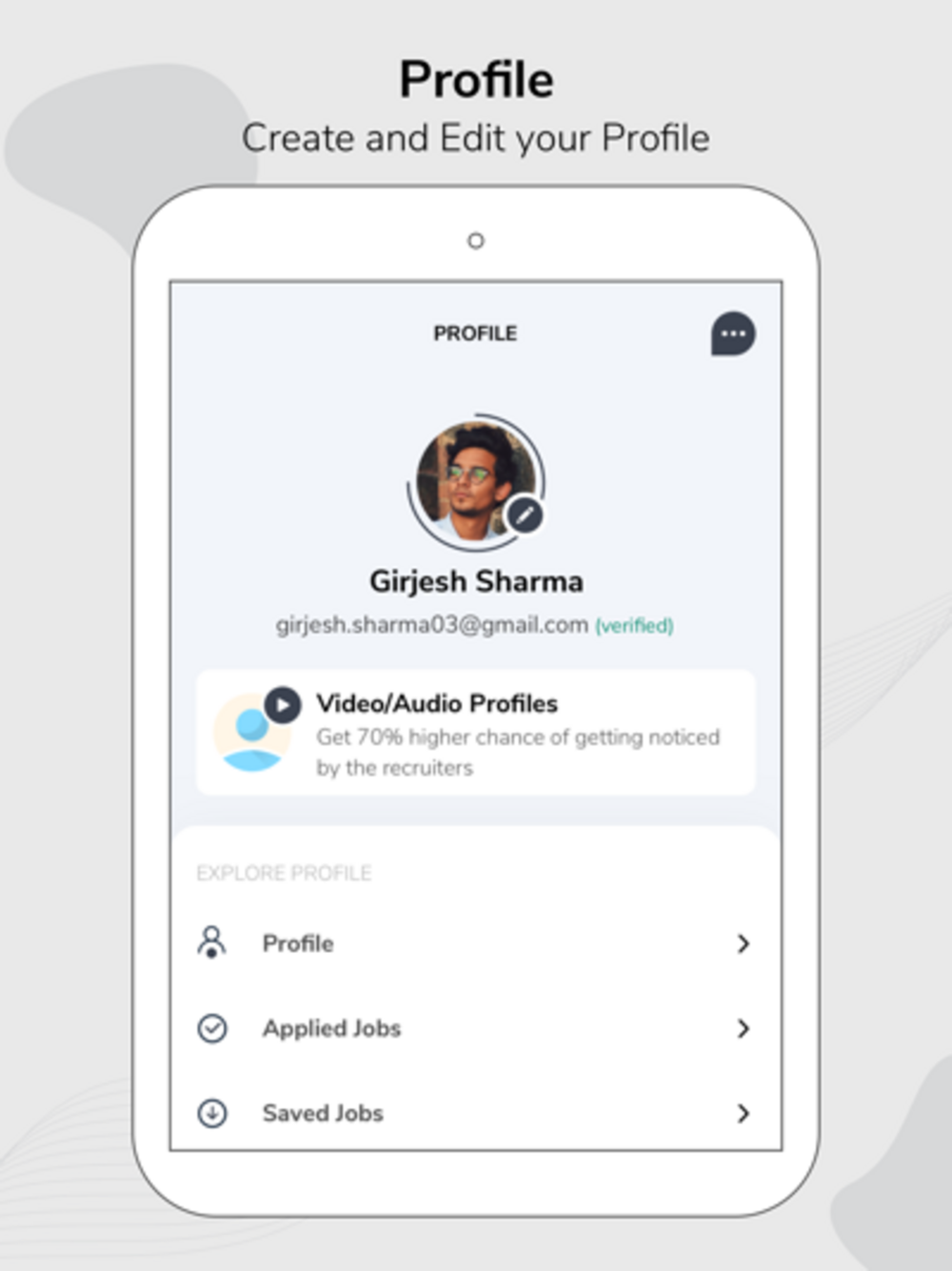 Create/edit your profile, create video resume and get the recruiter's attention.