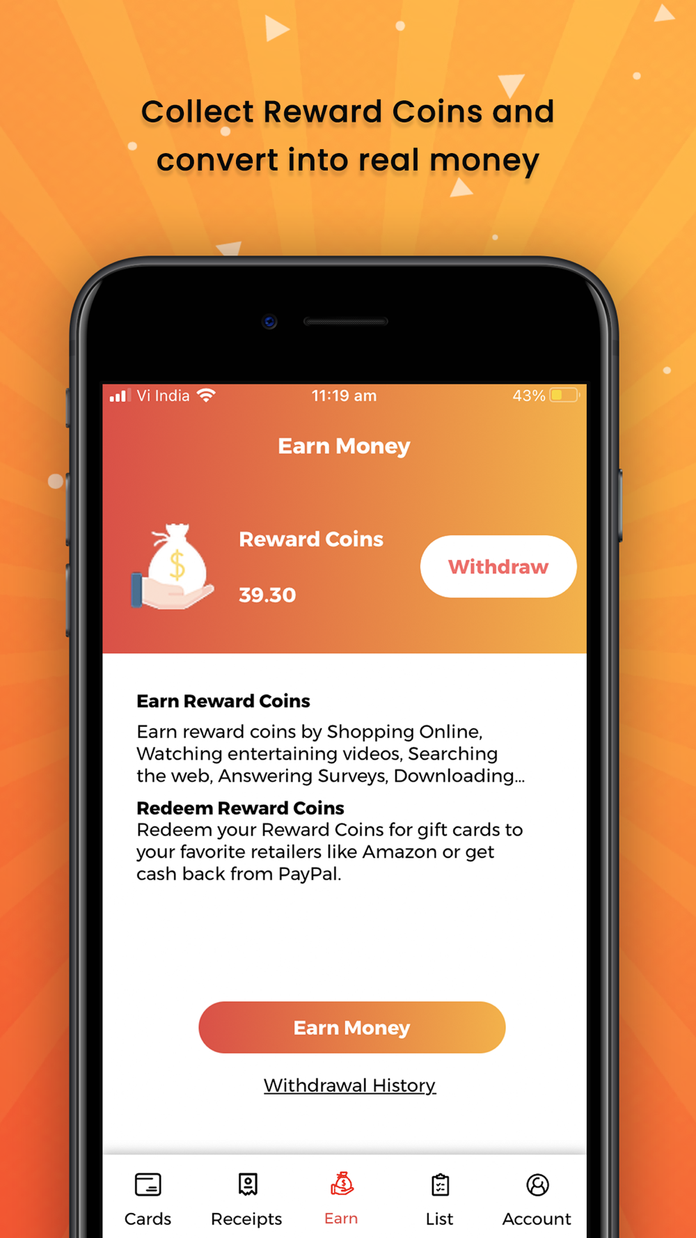 A smart way to carry loyalty cards, earn Reward Coins, create shopping list and manage purchase receipts.