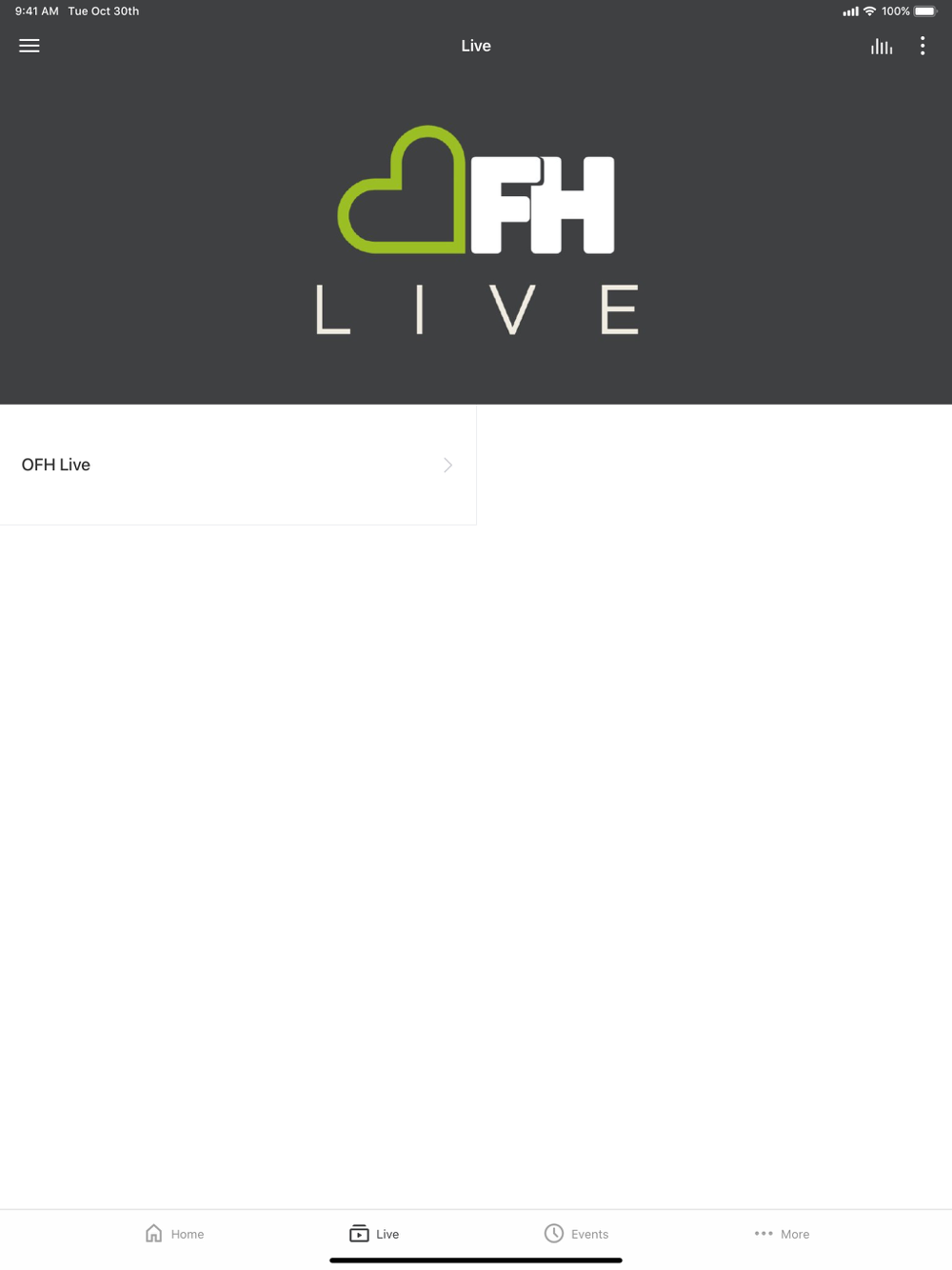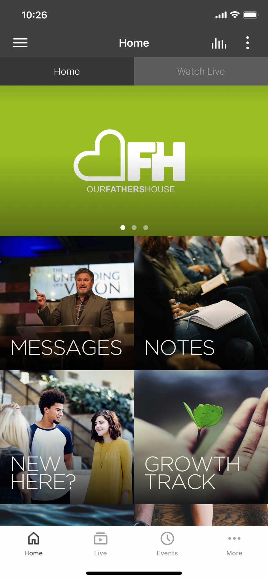 Our Fathers House App, features content from our weekend service and all areas of Church life here at OFH.