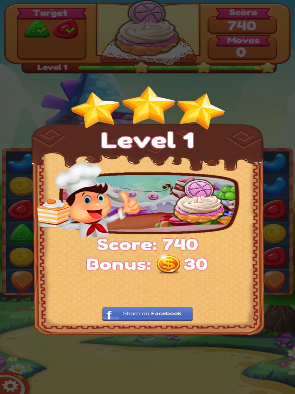- A sweet-smelling cake and exciting match-3 adventure challeng with beautiful world