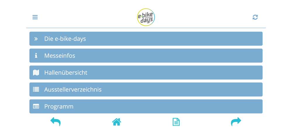 Mit der App zu den e-bike-days haben Sie das volle Programm in der Tasche: alle Themen, alle Aussteller, alle Termine. Von der Anfahrtskizze bis zum Hallenplan haben Sie alle Infos dabei. Ihr Ticket können Sie online kaufen. So gehen Sie locker an der Kassenschlange vorbei...