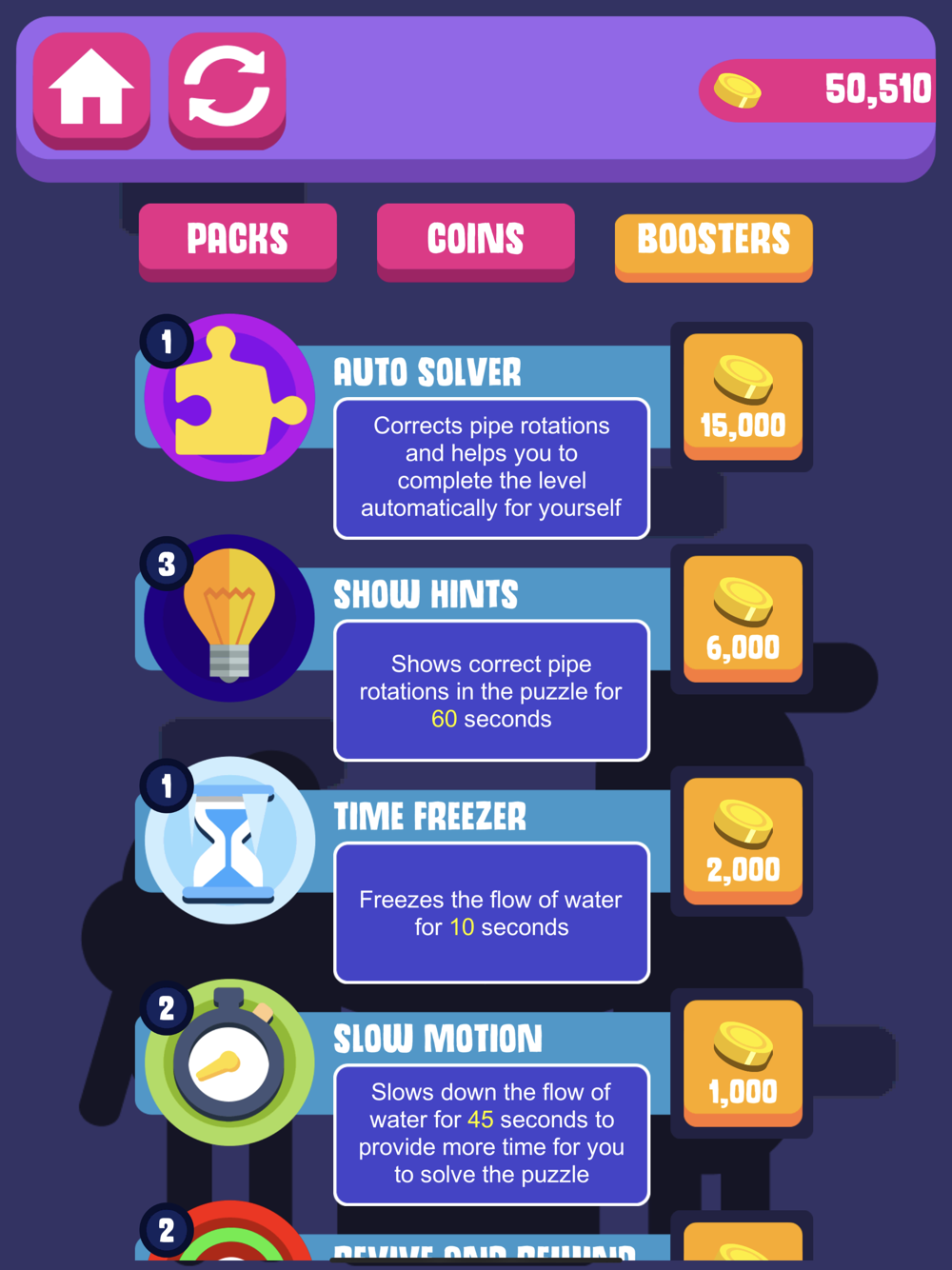 - Stuck on a level? Use free boosters or purchase new ones to pass the levels!