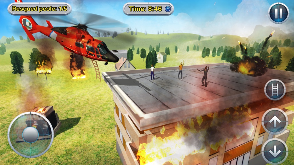 In this helicopter simulator, many rescue missions are waiting for you. Try to save everyone from burning buildings in the allotted time. If you manage to save them before the fire comes to the roofs, then you will be awarded and new levels will open to you.