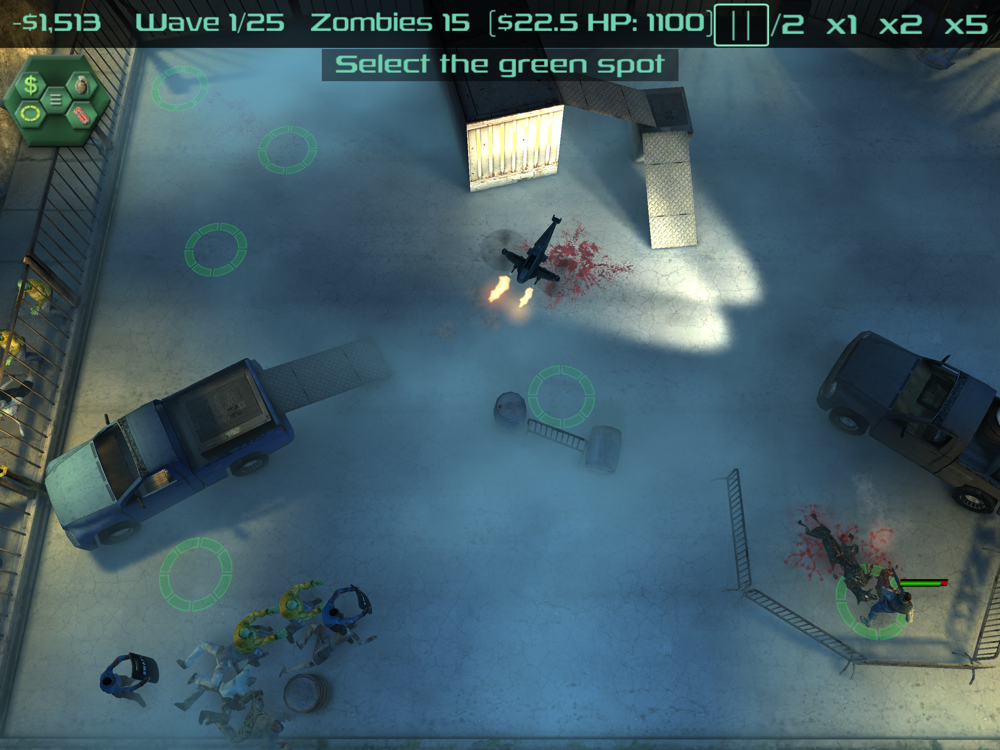Recruit soldiers, place them on slots and let them shoot incoming waves of zombies by their own.