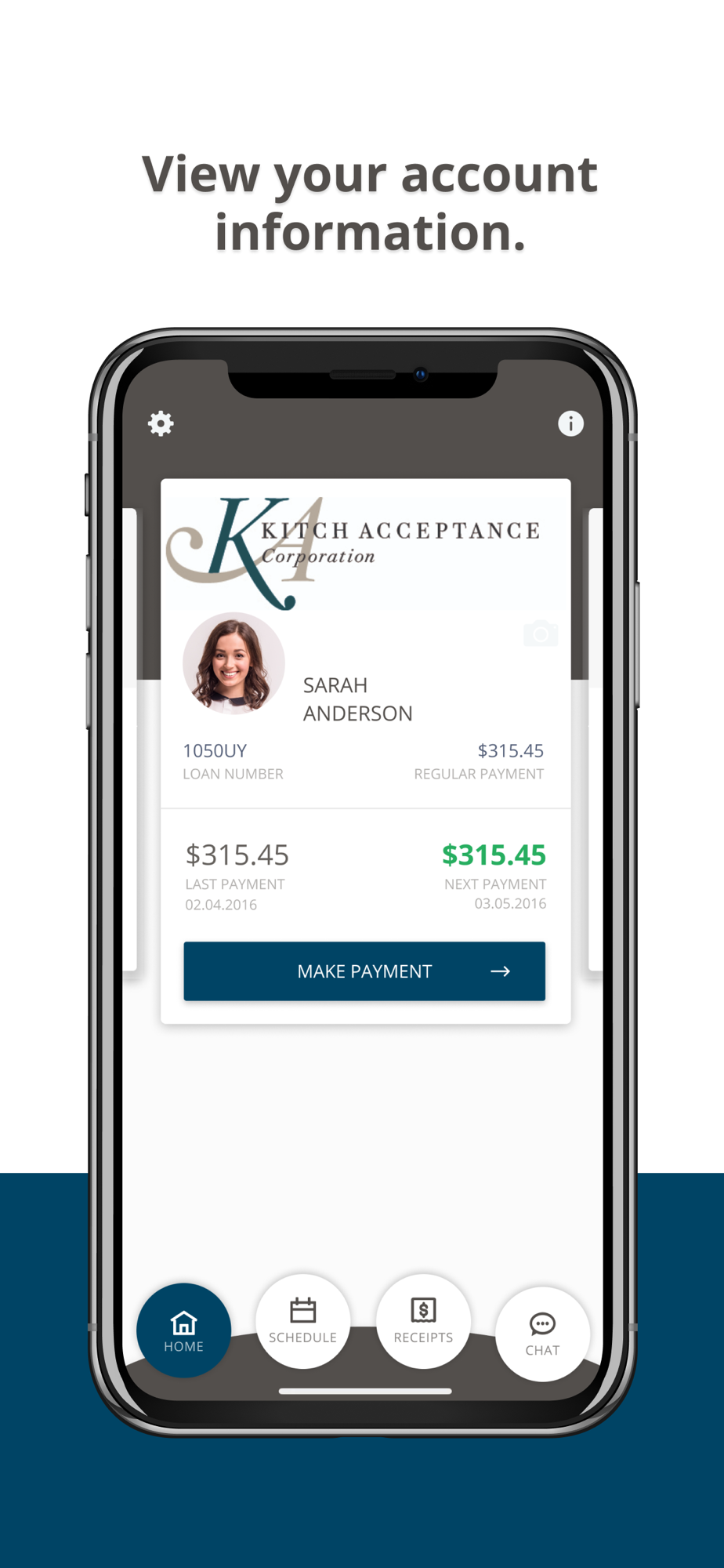 Make and schedule your Kitch Acceptance Corporation payment in real-time. The Kitch Acceptance Corporation is the easiest way to make your payment, see your payment history, and chat with your provider. It's fast, easy, and Free!