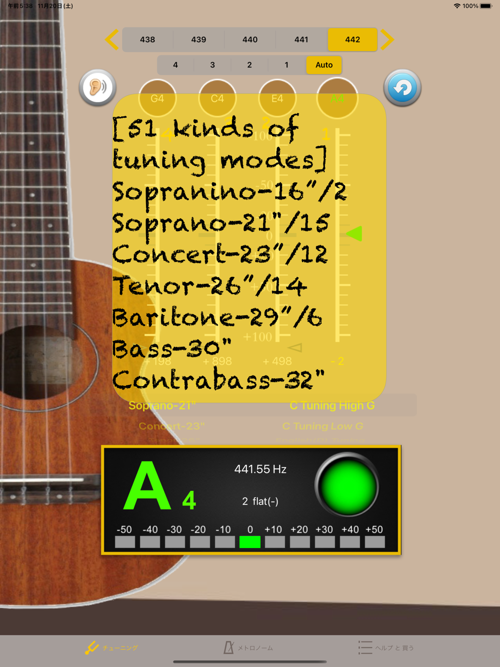- A4 Frequency adjustment: choose 428~452 frequencies for A4 string.