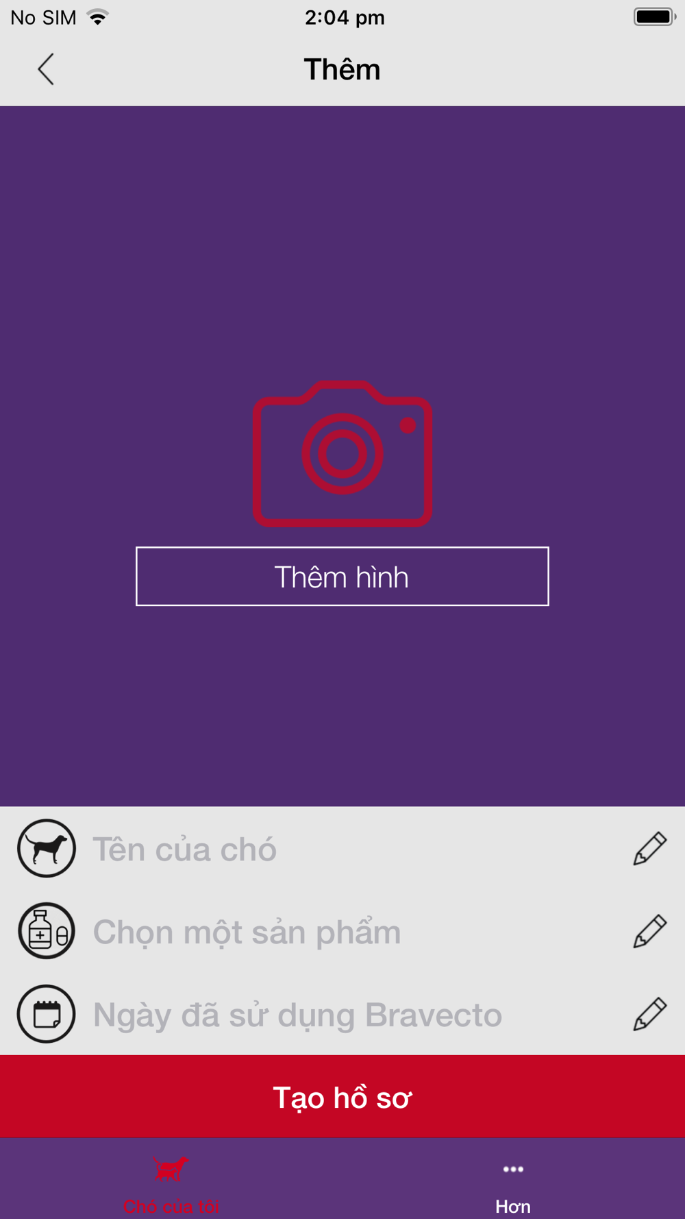 Tạo một hồ sơ cho mỗi chú chó và nhập vào ngày gần nhất đã cho chó sử dụng viên nhai Bravecto. Ứng dụng Bravecto Remider sẽ tự động thông báo cho bạn khi nào chó của bạn cần sử dụng liều tiếp theo. Nếu bạn quên, ứng dụng này của chúng tôi sẽ gửi thông báo nhắc nhở nhằm giúp chó của bạn luôn trong tình trạng được bảo vệ.
