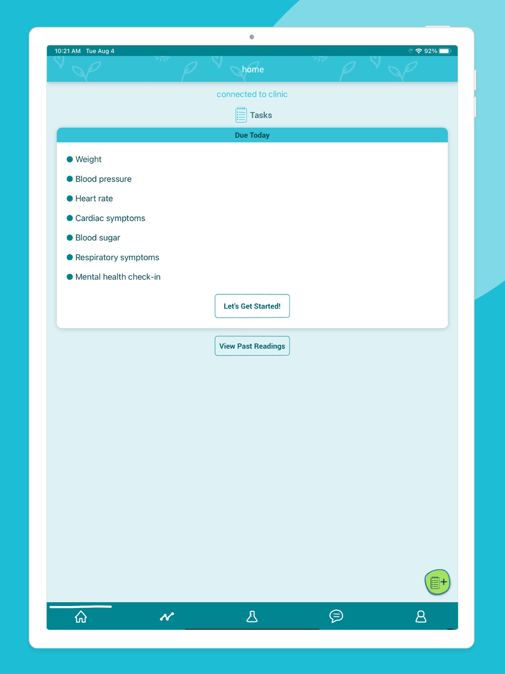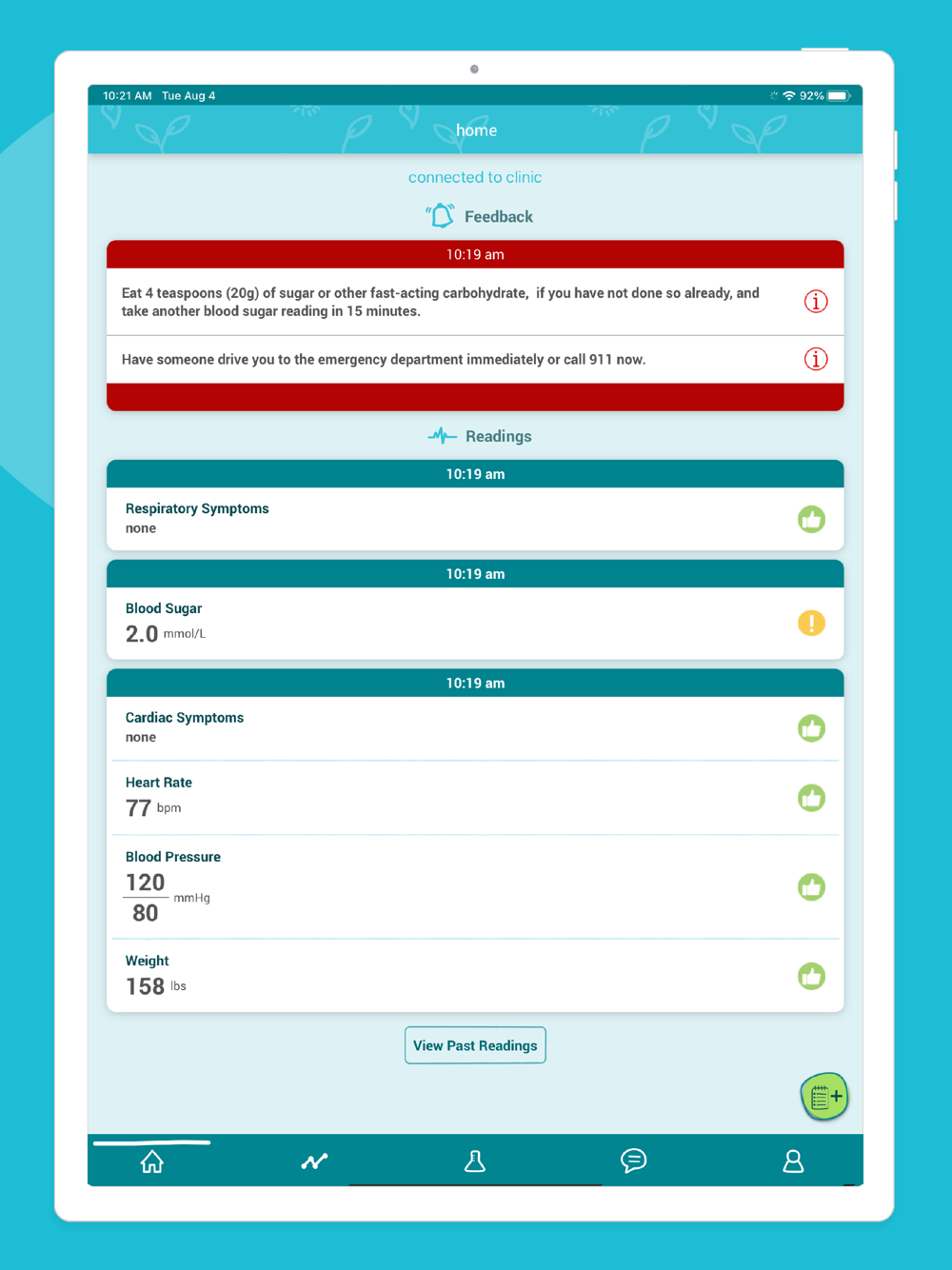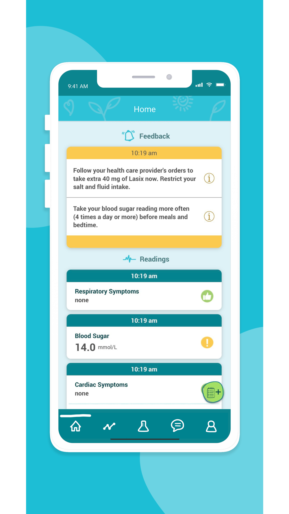 • Manage your chronic condition(s) by inputting your health data and informing the clinician.