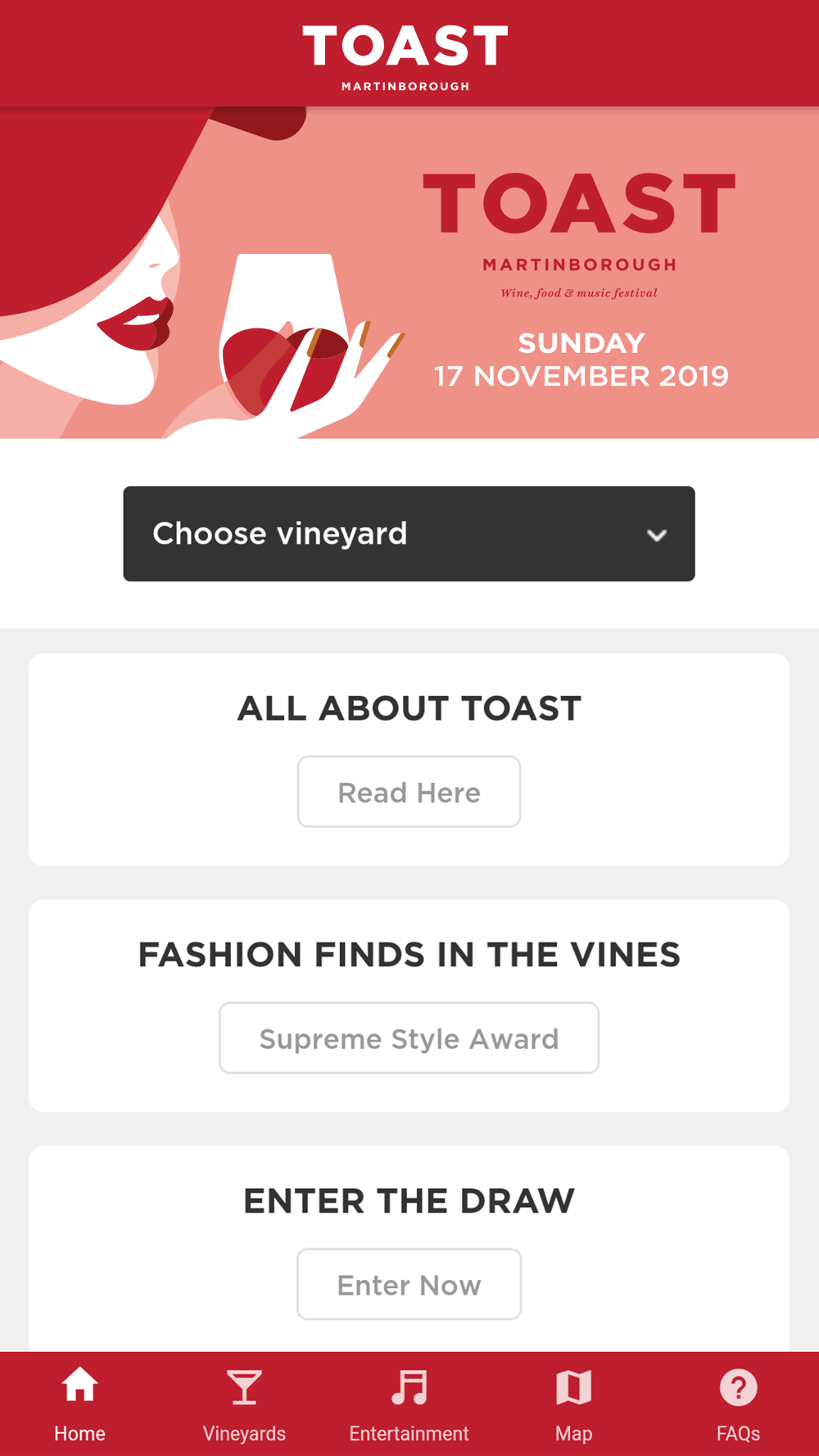 The Toast Martinborough App provides all you need to know on the day of Toast. From the wine and food available to the entertainment on show. Plus details about getting to and from the festival and festival money and refunds.