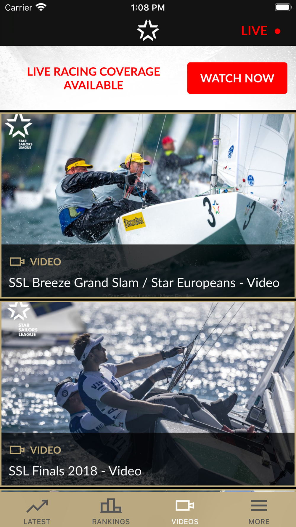 - Watch live racing coverage during regattas in the app