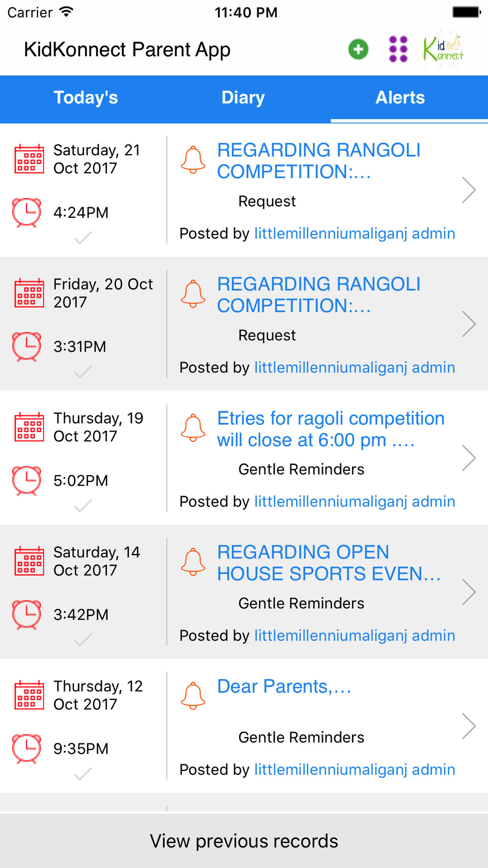 Kidkonnect™ - The ultimate school to parent communication tool. This School Application provides schools with an easy way to update parents everything they need to know about the school, like Diary, Insta Alerts, Personal Comments, Events and Galleries, Holiday Calendar, School Notices, School Timetables, Absentee Forms, School Documents, and much more.