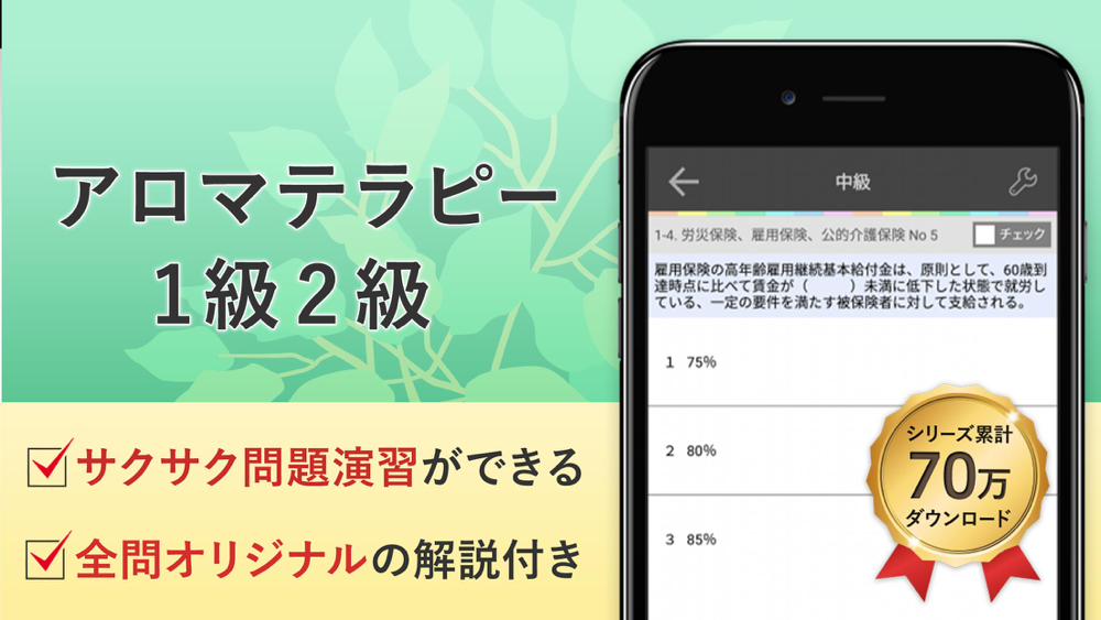 香りの知識を知り健康維持に活かす事ができる人気資格「アロマテラピー検定1級2級」の学習アプリです。