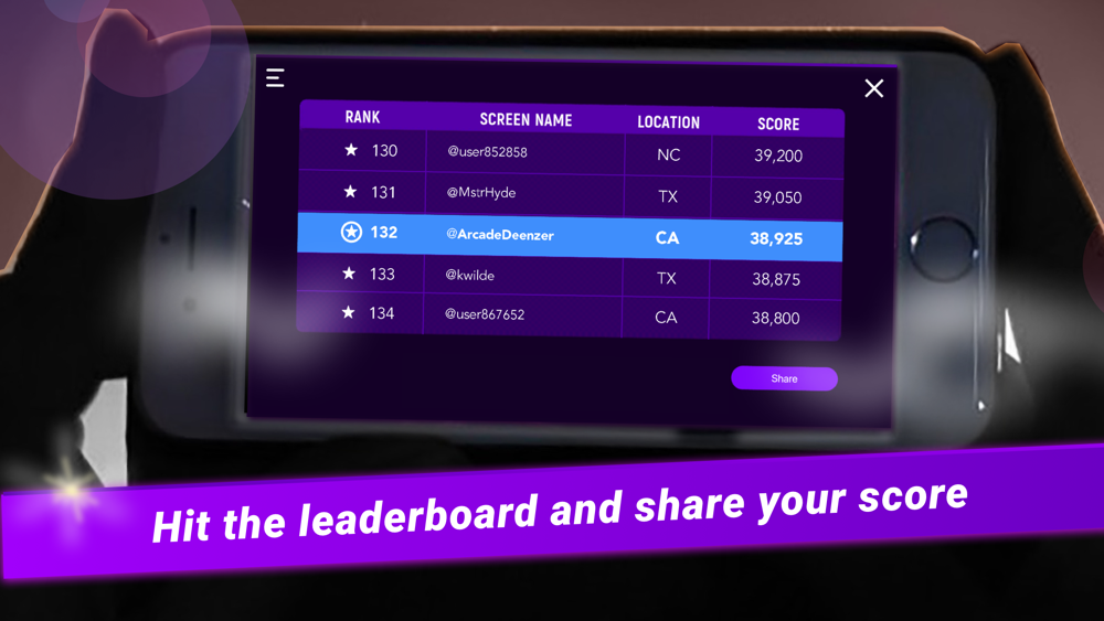 Play Noovie Arcade on the big screen before the previews at your local movie theater. Download the game before you go and open the app when you sit down. Then, keep your eyes on the theater screen because Noovie will tell you when the game is about to begin. Point your phone at the big screen to start playing.