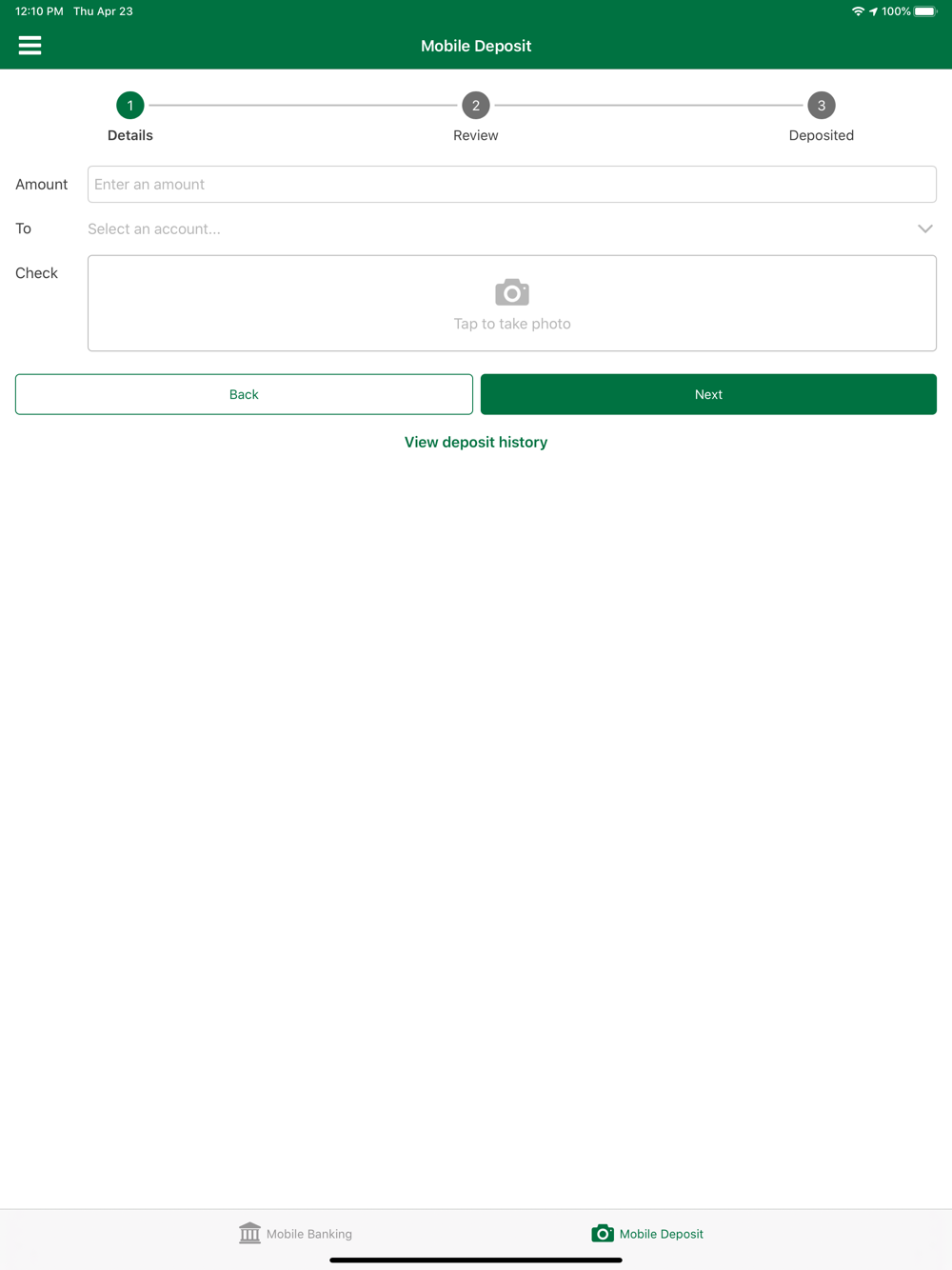 • Deposit checks with your smartphone