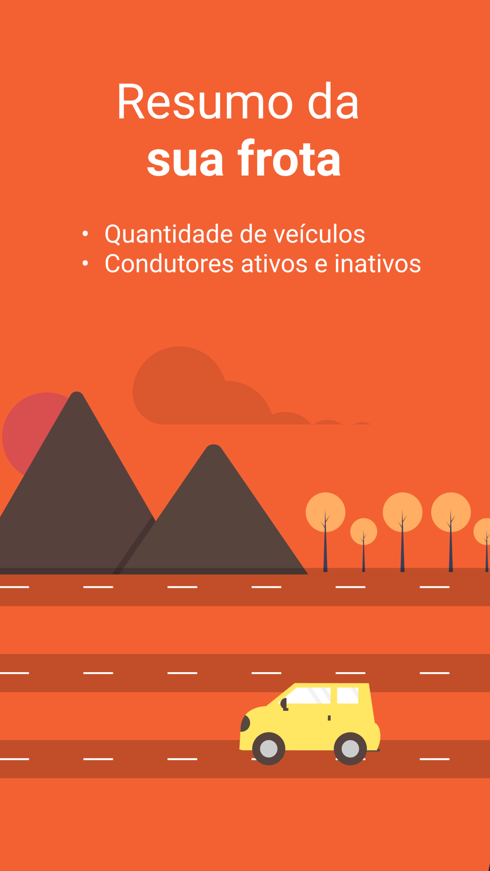 • Resumo da frota com quantidade de veículos, condutores ativos e inativos;