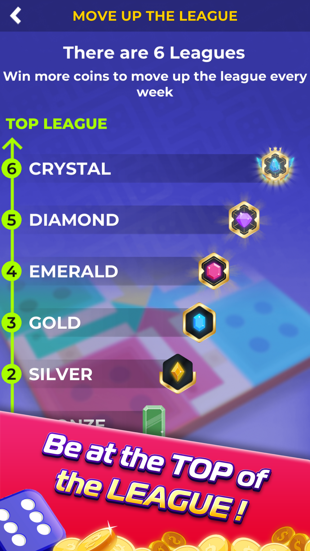• League : Win more coins to move up on the weekly league leaderboard and get promoted to next league with more competitive players