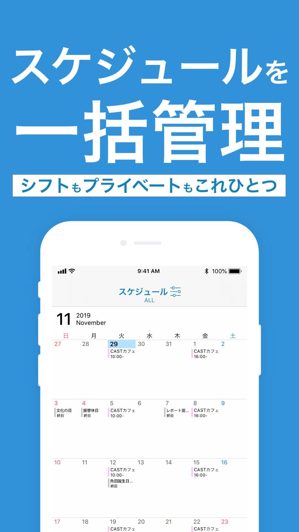 シフト管理・給料計算アプリ「CAST/キャスト」でスタッフのスケジュール管理や給料計算を簡単に。
