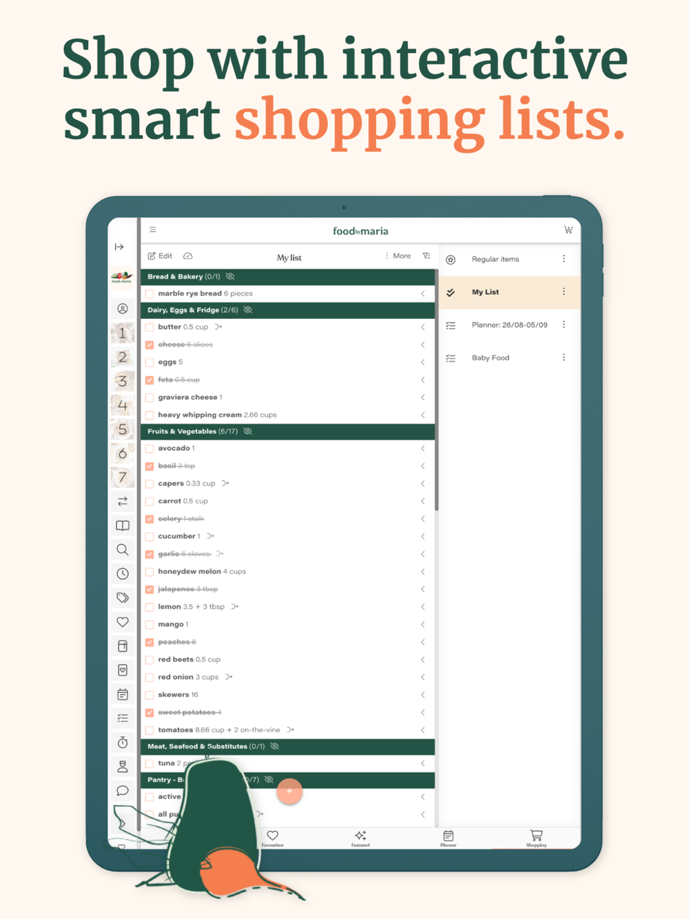 • Shopping Lists - Whip up interactive shopping lists & throw on your own weekly essentials!