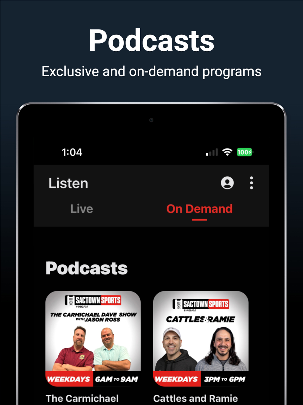 Listen to your favorite Sacramento sports radio station on the go, in the palm of your hand. Listen for free, anytime of day with crystal clear audio quality.