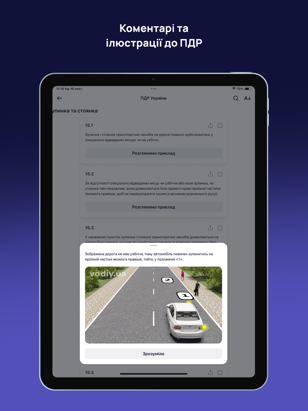 * Пояснення до всіх питань, тестування з усіх тем на сайті vodiy.ua та у цьому застосунку, перегляд коментарів та ілюстрованих прикладів ПДР в мобільному додатку доступні тільки для користувачів Premium.