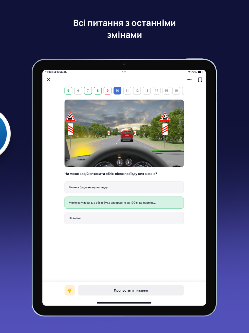 Єдиний мобільний застосунок, який у режимі "Іспит" підбирає питання за офіційним алгоритмом, як на справжньому іспиті.