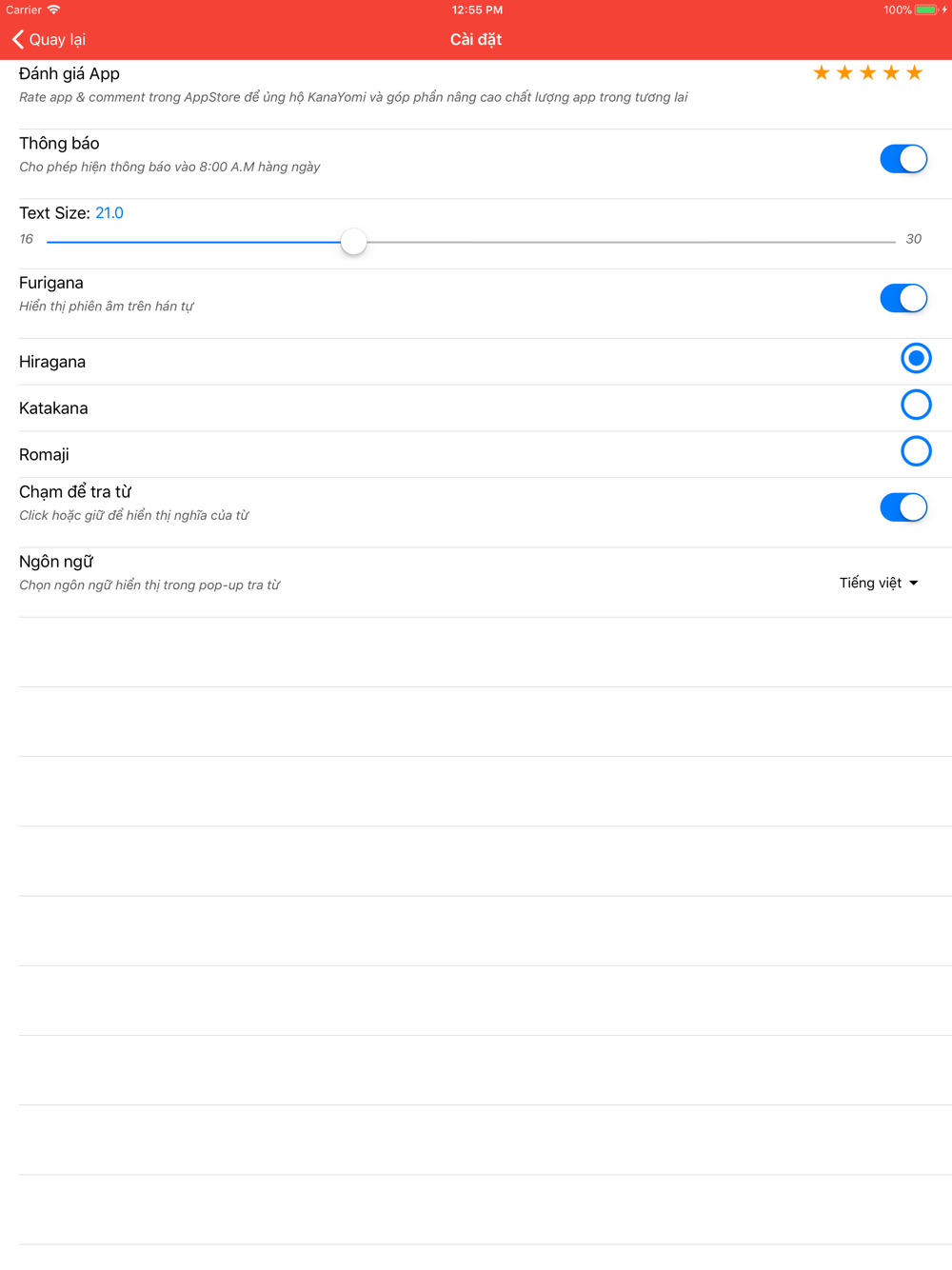 - Show pronunciation key(Hiragana, Katakana, Romaji) above Kanji.