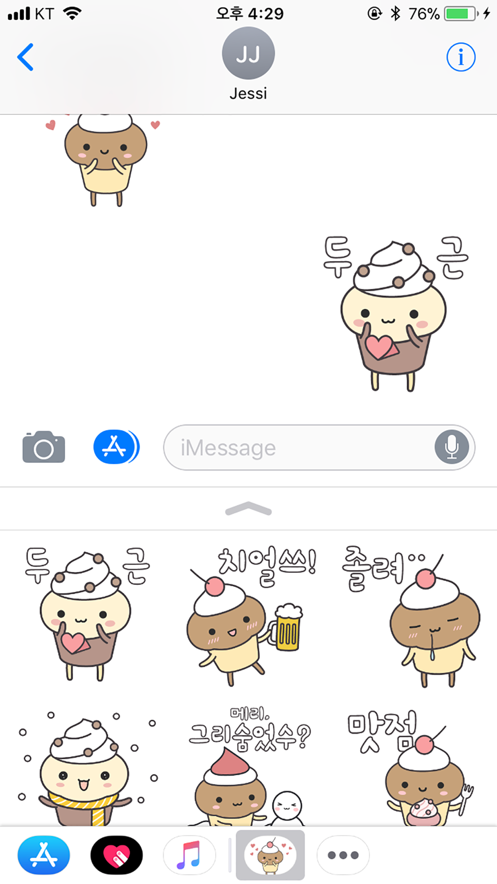 스티커를 드래그 앤 드롭하면 메시지 위 아무데나 붙일 수 있어요!