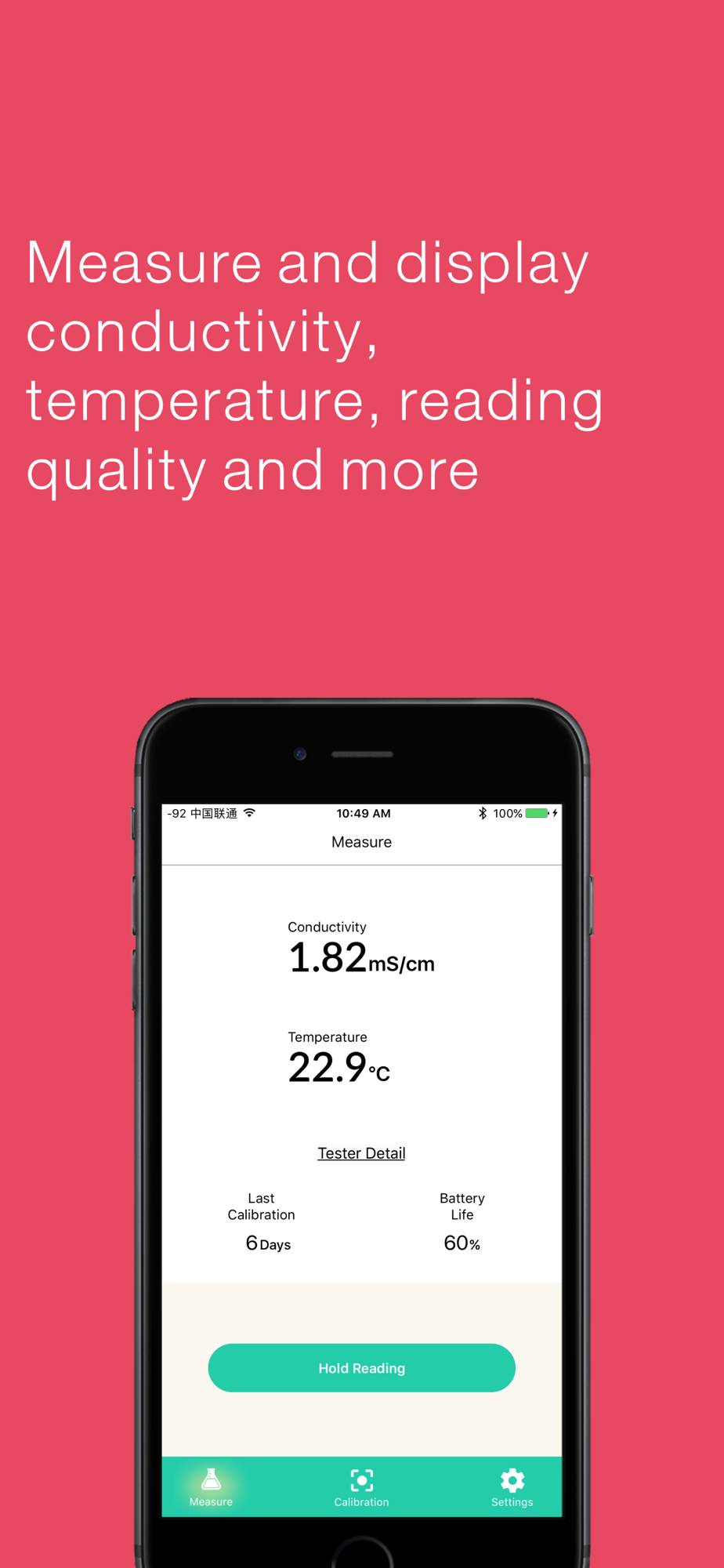 • Displays Bluetooth conductivity tester’s battery life