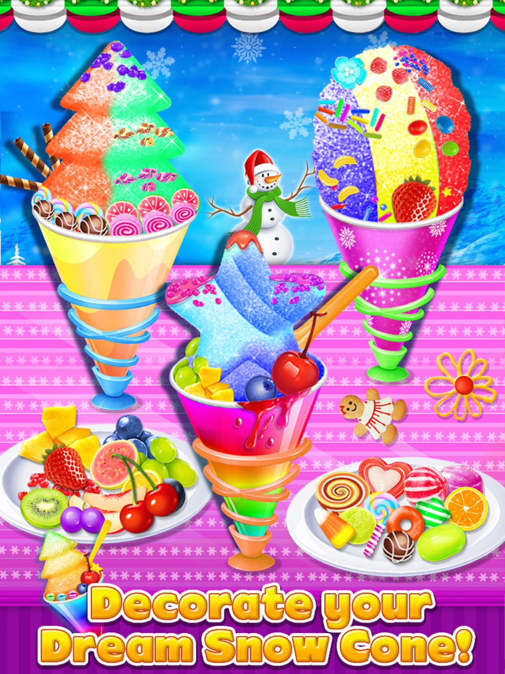 Decorate your snow cone with fruity toppings, sprinkles, sweet candies and other tasty things.