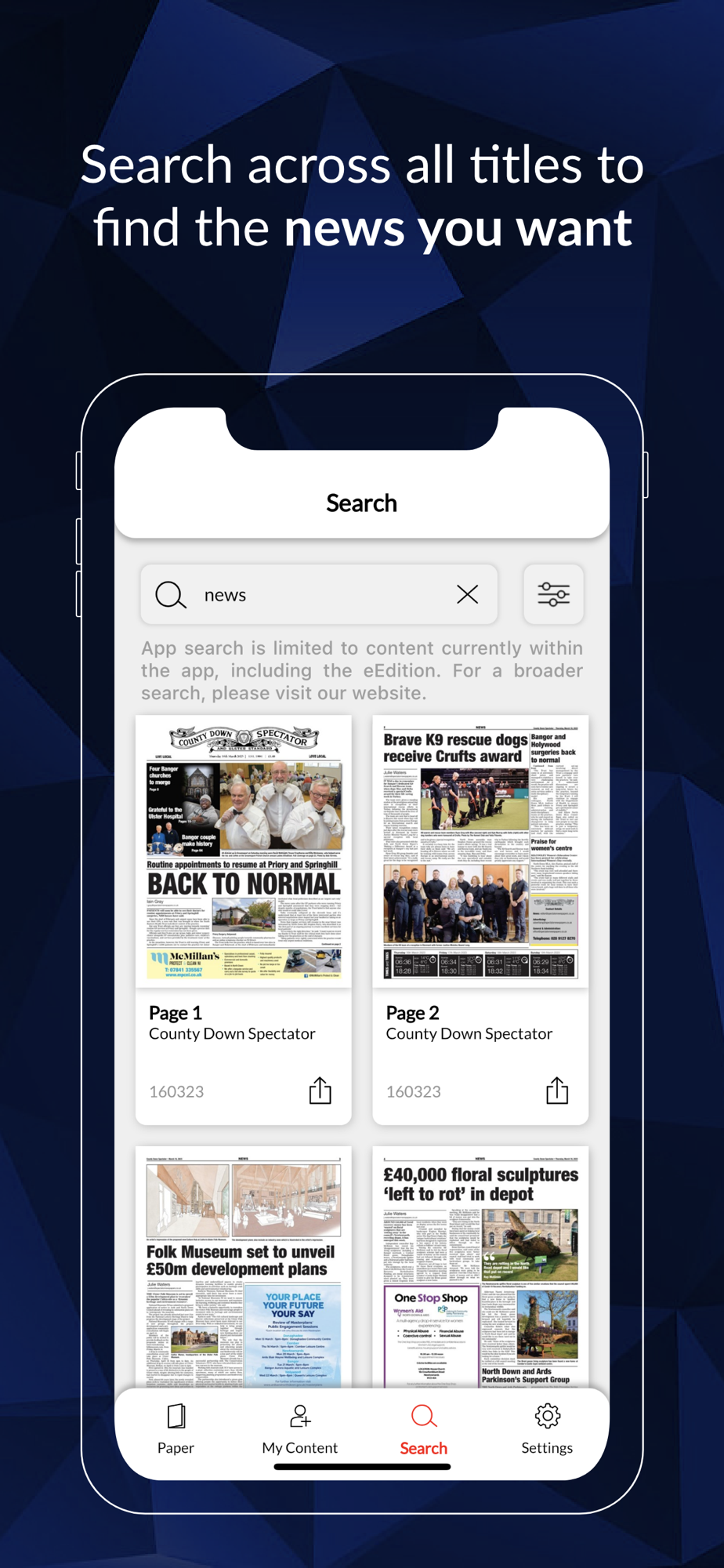 • Read the full range of the newspapers’ content effortlessly with simple navigation in an easy to use format.