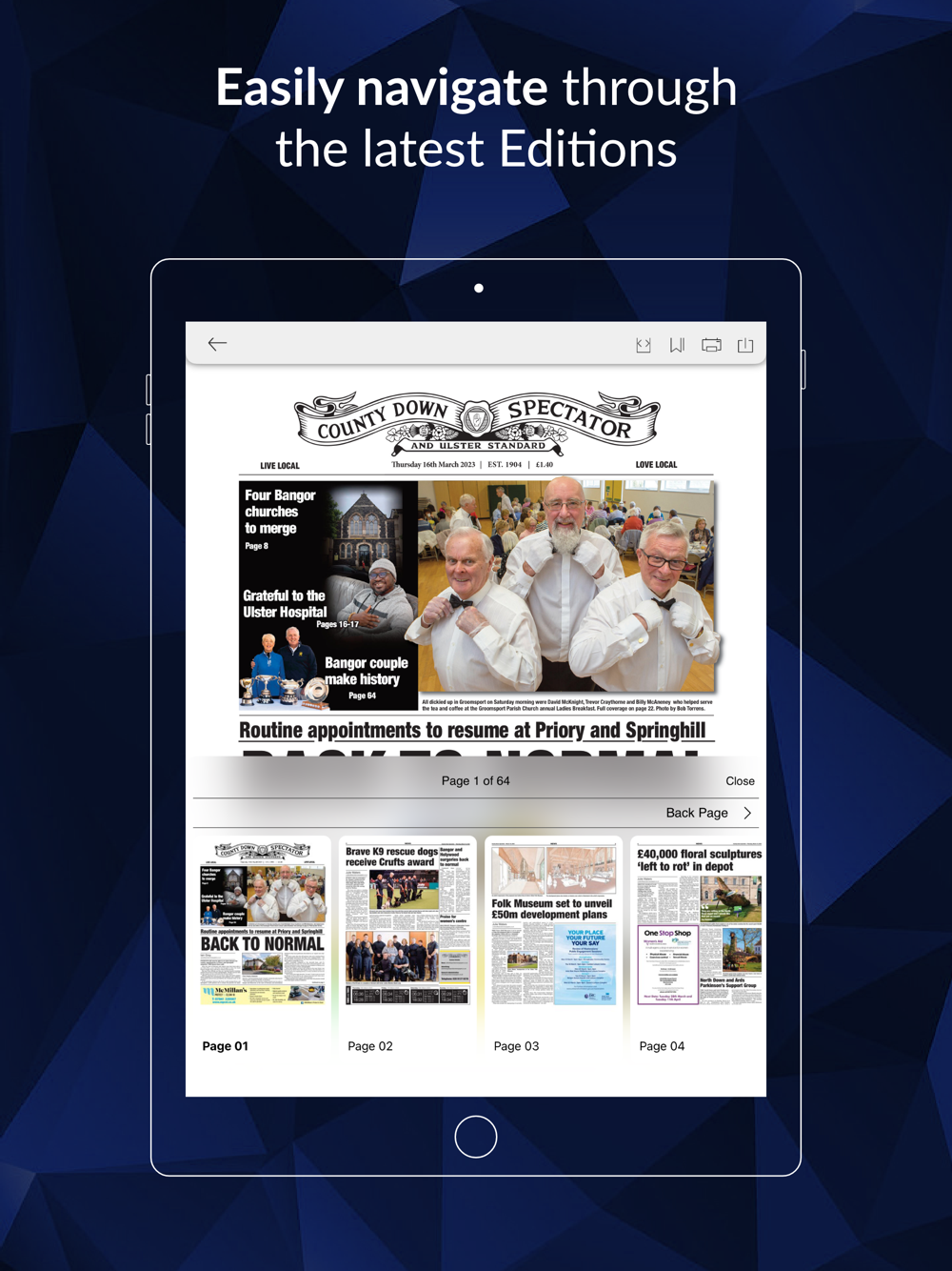 Specially designed for the iPad and iPhone, this app brings you full access to The County Down Spectator’s award-winning local journalism. Keep up to date with local news that matters to you. Download the app and receive the digital edition of the newspaper direct to your iPhone or iPad for 10am every Thursday.