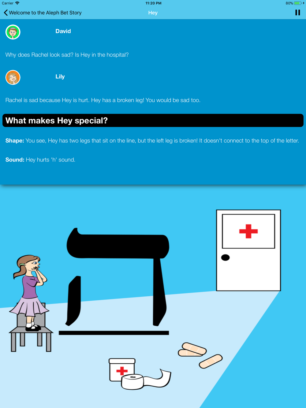 Welcome to The Aleph Bet Story! Each Hebrew letter comes to life in a whimsical story and colorful picture of its own. Sarah and David and their young friends Ben and Rachel want to share their adventures with you. Along the way, you'll join David at a baseball game, see Ben in outer space, see Ben and Rachel in the Garden of Eden and join Sarah as she dreams about her wedding day. These are just some of the fun stories that you'll see and hear as you learn the Hebrew letters. Remembering the Aleph Bet was never so easy and so much fun!