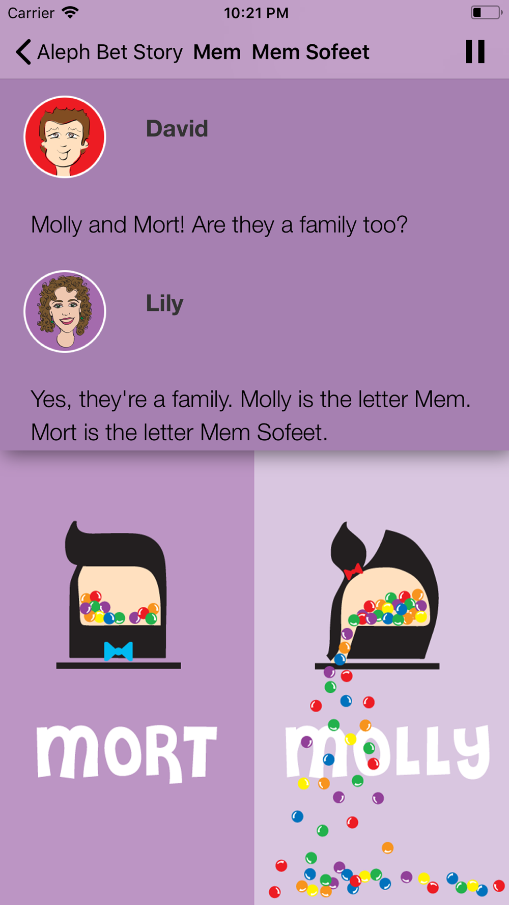 The Aleph Bet Story is the foundation for the Sarah and David system of Hebrew reading. With the letters learned well at the very beginning, you'll be ready for the next step, learning to read Hebrew.
