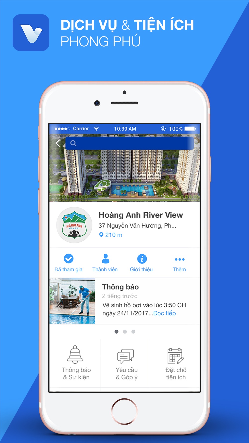 - Nhận các thông báo, tin tức tức thời từ BQL, NCC dịch vụ.