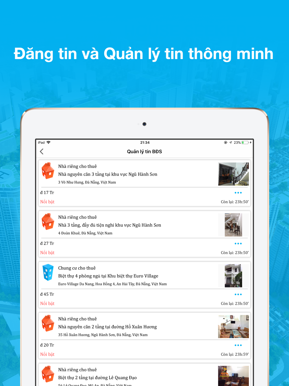 - Cung cấp hàng trăm tin BĐS mỗi ngày cho toàn bộ TP. Đà Nẵng