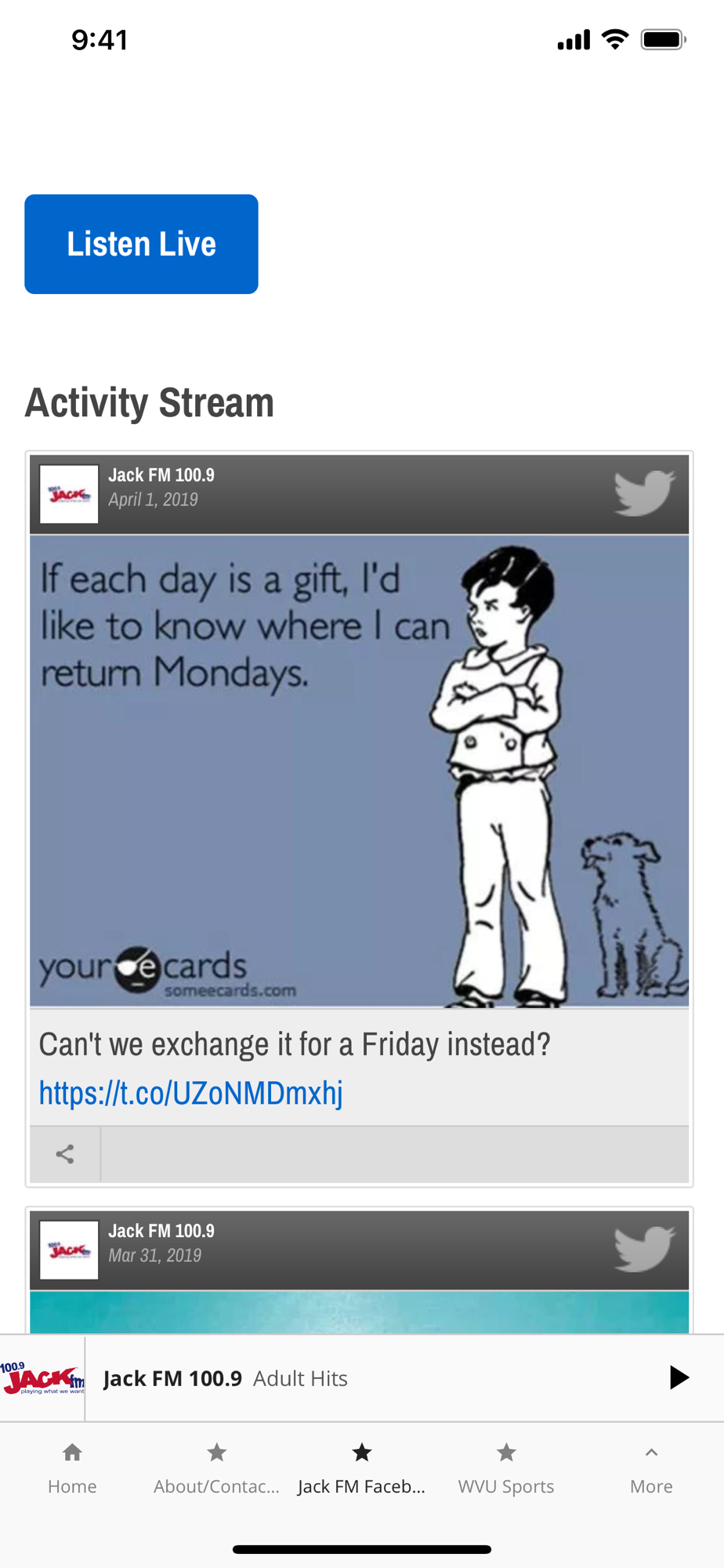 Jack FM (100.9 FM WZST)is Morgantown’s home for the best variety of adult hits; plus, we are THE OFFICIAL FLAGSHIP of West Virginia University! Jack FM has it all when it comes to WVU: Football, Men’s Basketball, Women’s Basketball and Baseball. The home for the Mountaineers and the best music is all right here, 100.9 Jack FM, and streaming online at www.JackFM101.com! Jack FM is licensed to LHTC Media of West Virginia, Inc. To learn more about LHTC Media and its affiliates, visit www.lhtcmedia.com.