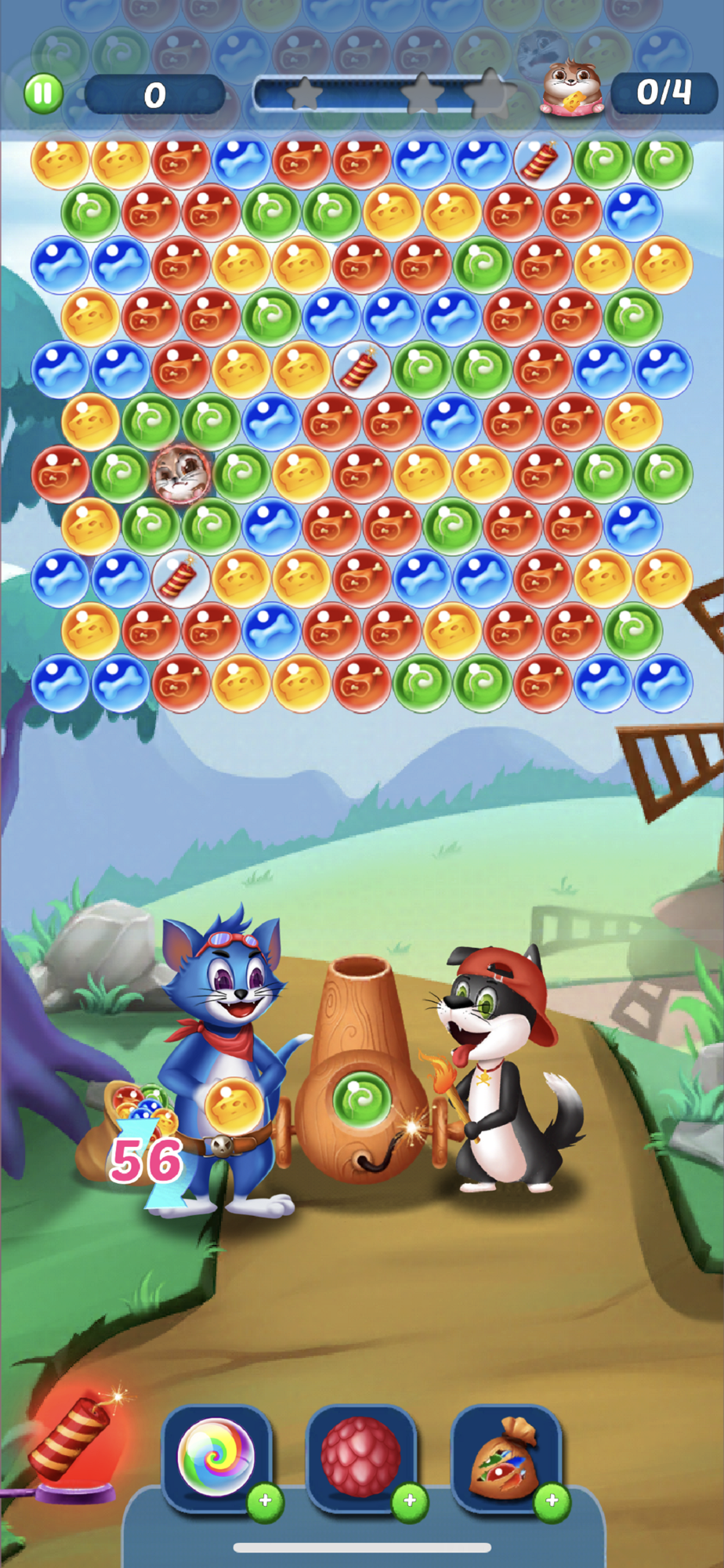 Let's have Tom Cat eat cookie & candy increased strength, before shot up the bubbleshooter so that the Pulldog muscular dog saves the poor Perry mice being trapped by wildcat cats.