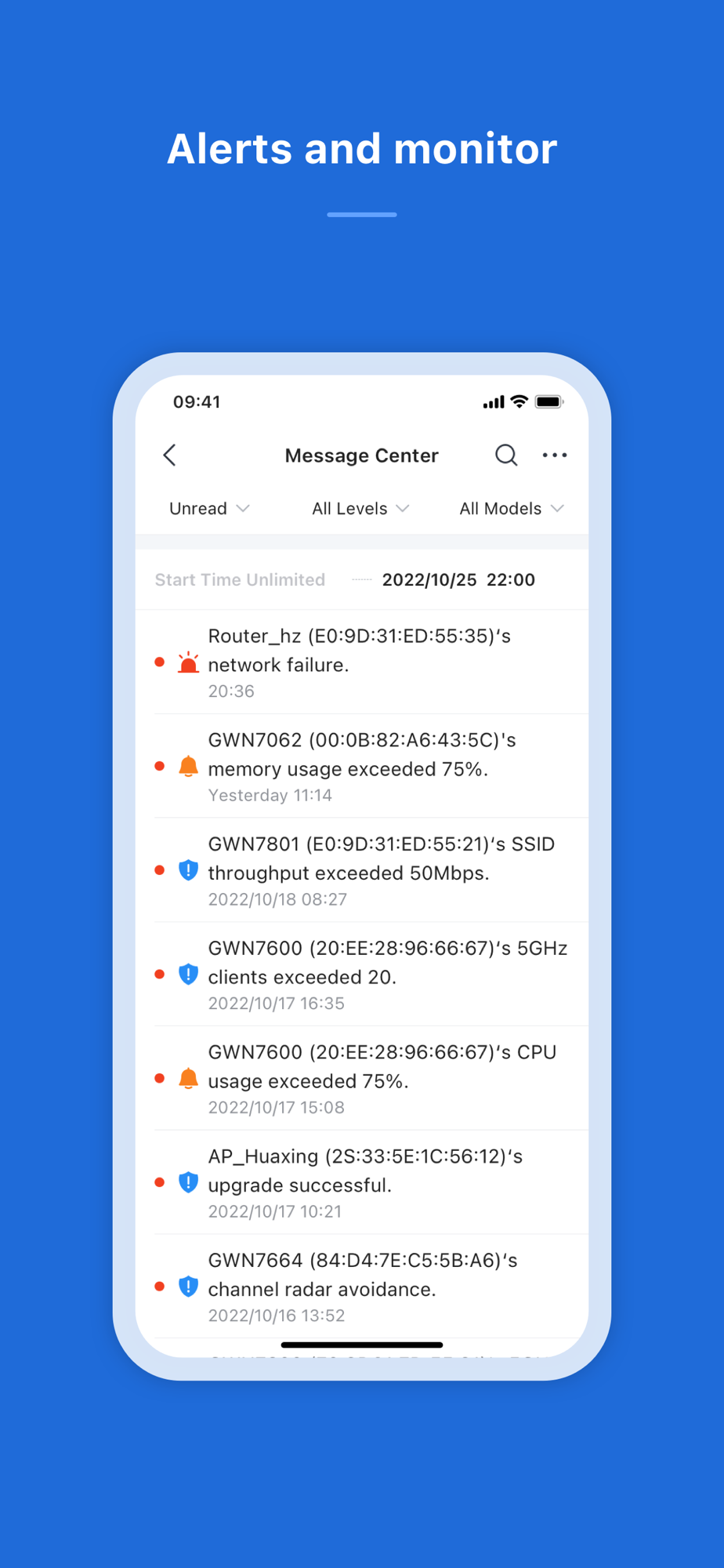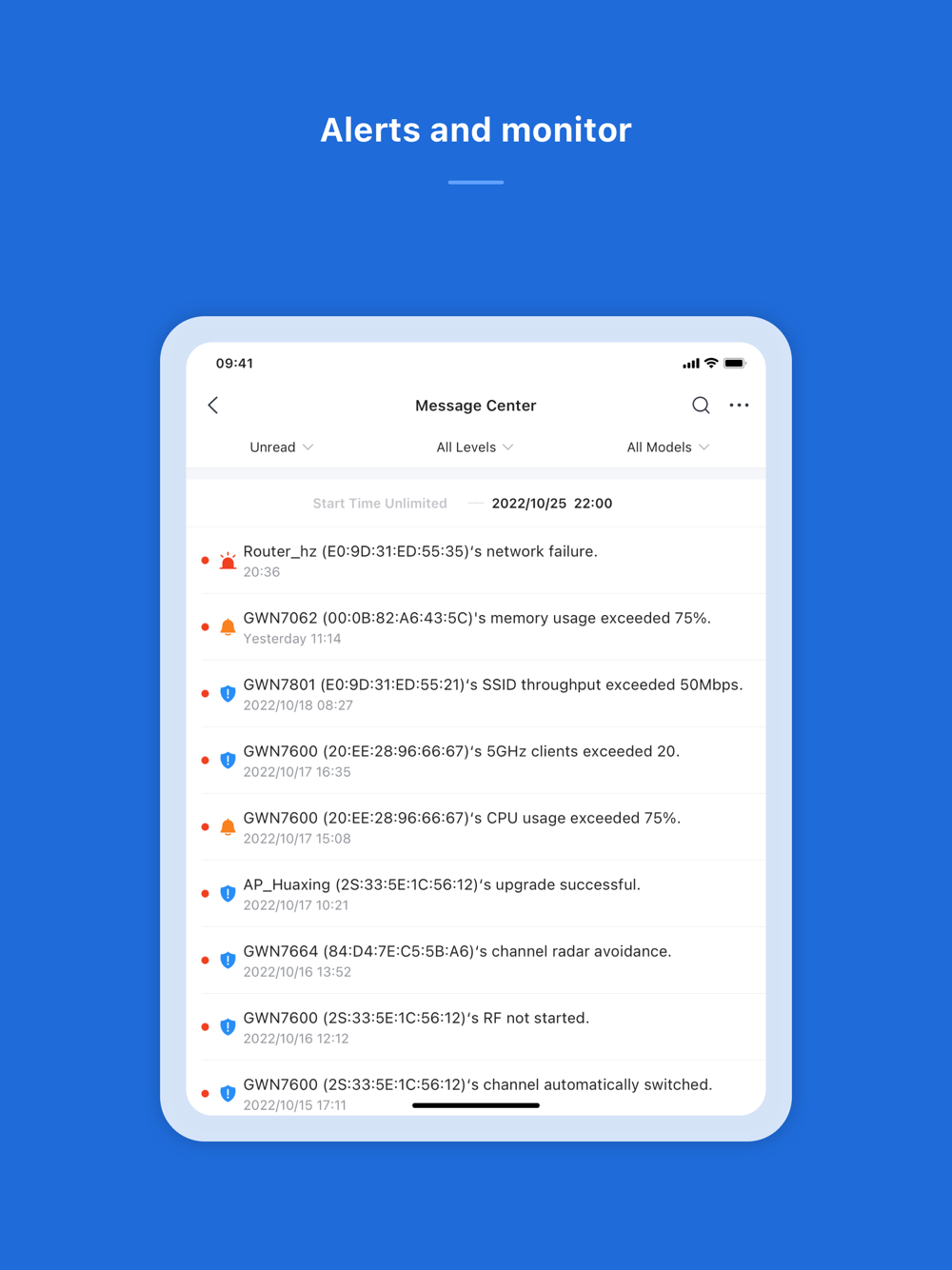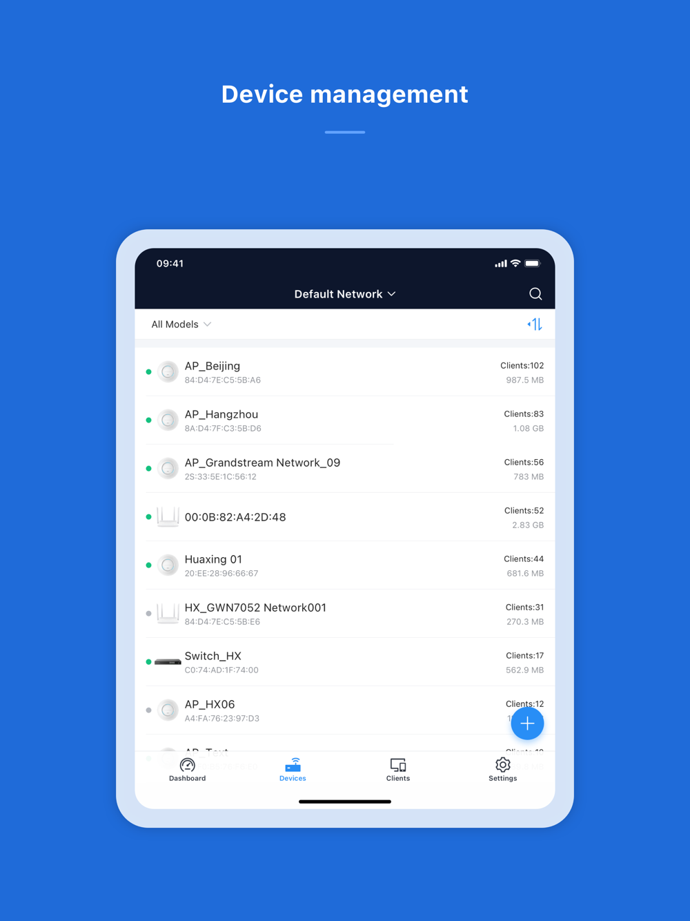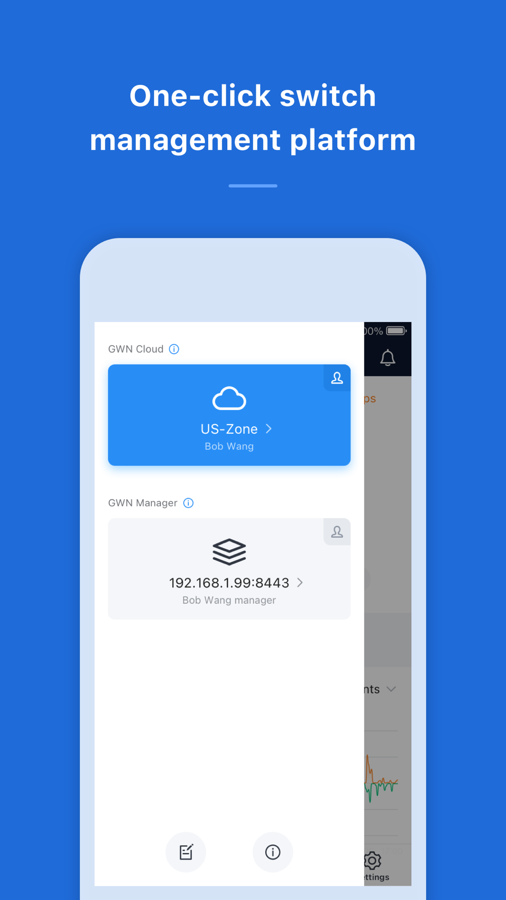 Manage the network-based devices at anytime from anywhere using iOS phone with the GWN app. This free app links seamlessly with devices registered in GWN.Cloud or GWN Manager, and allows users to conveniently monitor and manage the network established by GWN devices. The GWN app extends web features to iOS phone to allow you to manage the network and be productive while on-the-go: monitor network/device/client status in different time periods, notify alert information once alert event occurs, add device to the network via phone camera scanning or manually fill in device MAC and its corresponding password, monitor device details including usage and other information, support debug tools for problem-tracking, configure your network as well as devices according to your needs, and much more. There is no purchase necessary to manage the network-based devices with the GWN app.