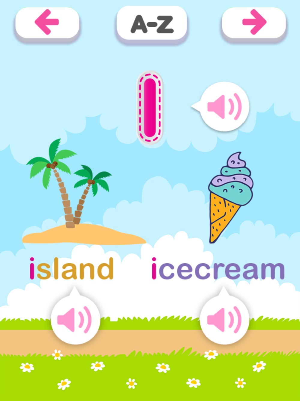 In applications with a button and a Alphabet English. 26 letters from A to Z, when pressed, it 26 sounds with the English alphabet. With the word 26 sounds to help them remember.