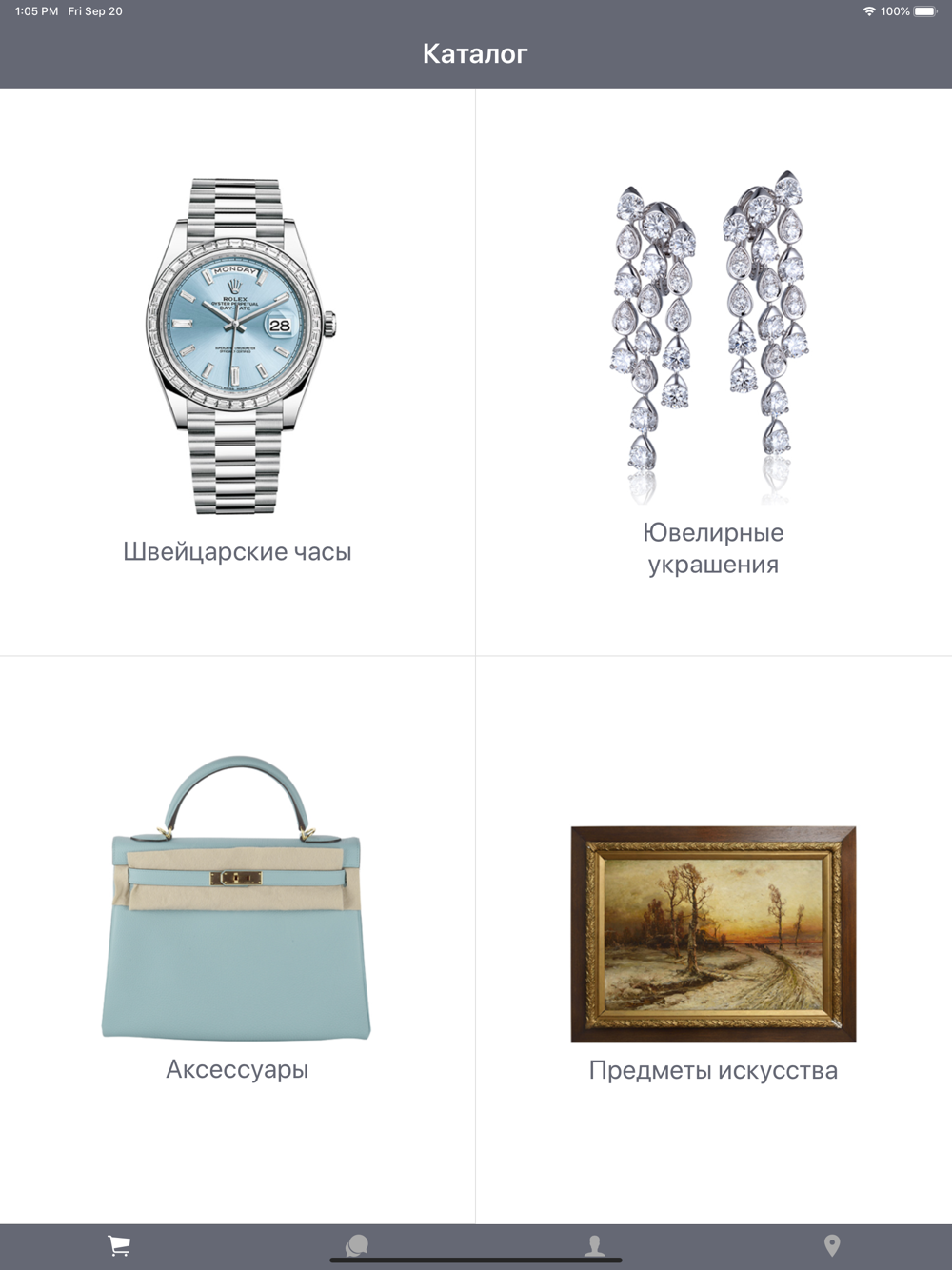 В нашем обширном каталоге предложены швейцарские часы, ювелирная продукция и аксессуары от многих именитых брендов. Для ценителей искусства у нас найдутся редкие картины известных русских и зарубежных мастеров.