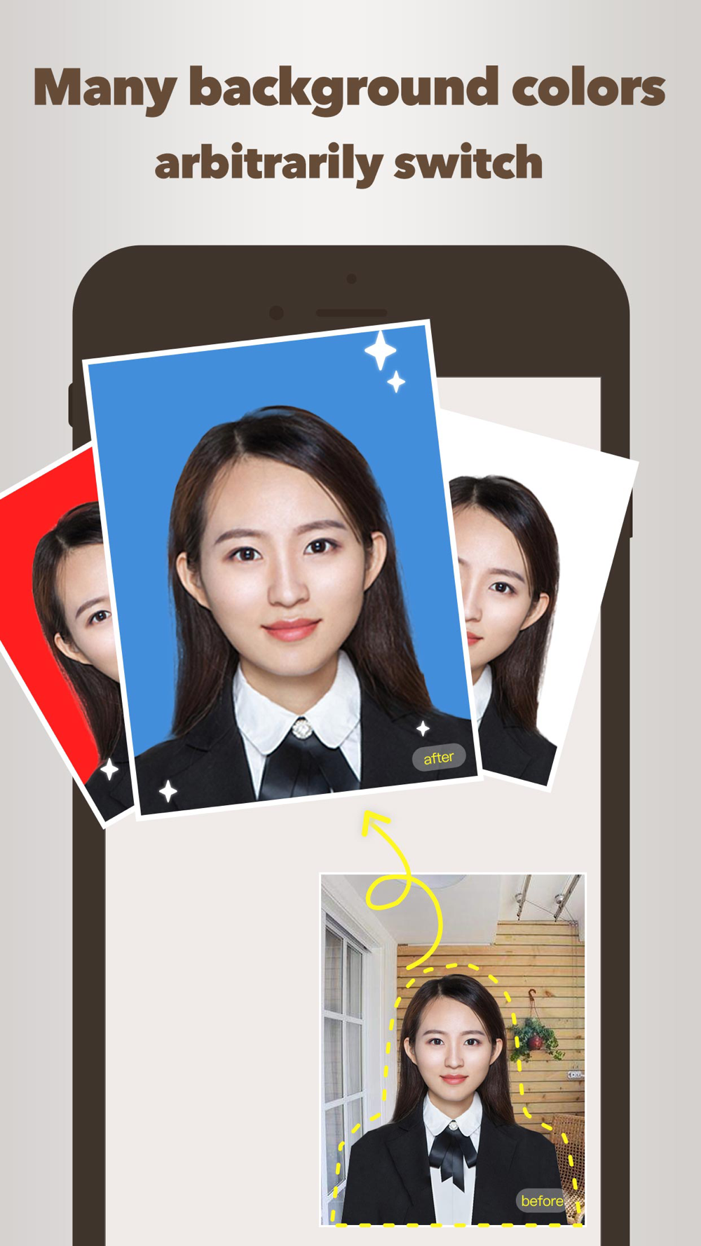 Quick ID Photo, useful for id cards, passport, visa, licenses and all kinds of certificates.