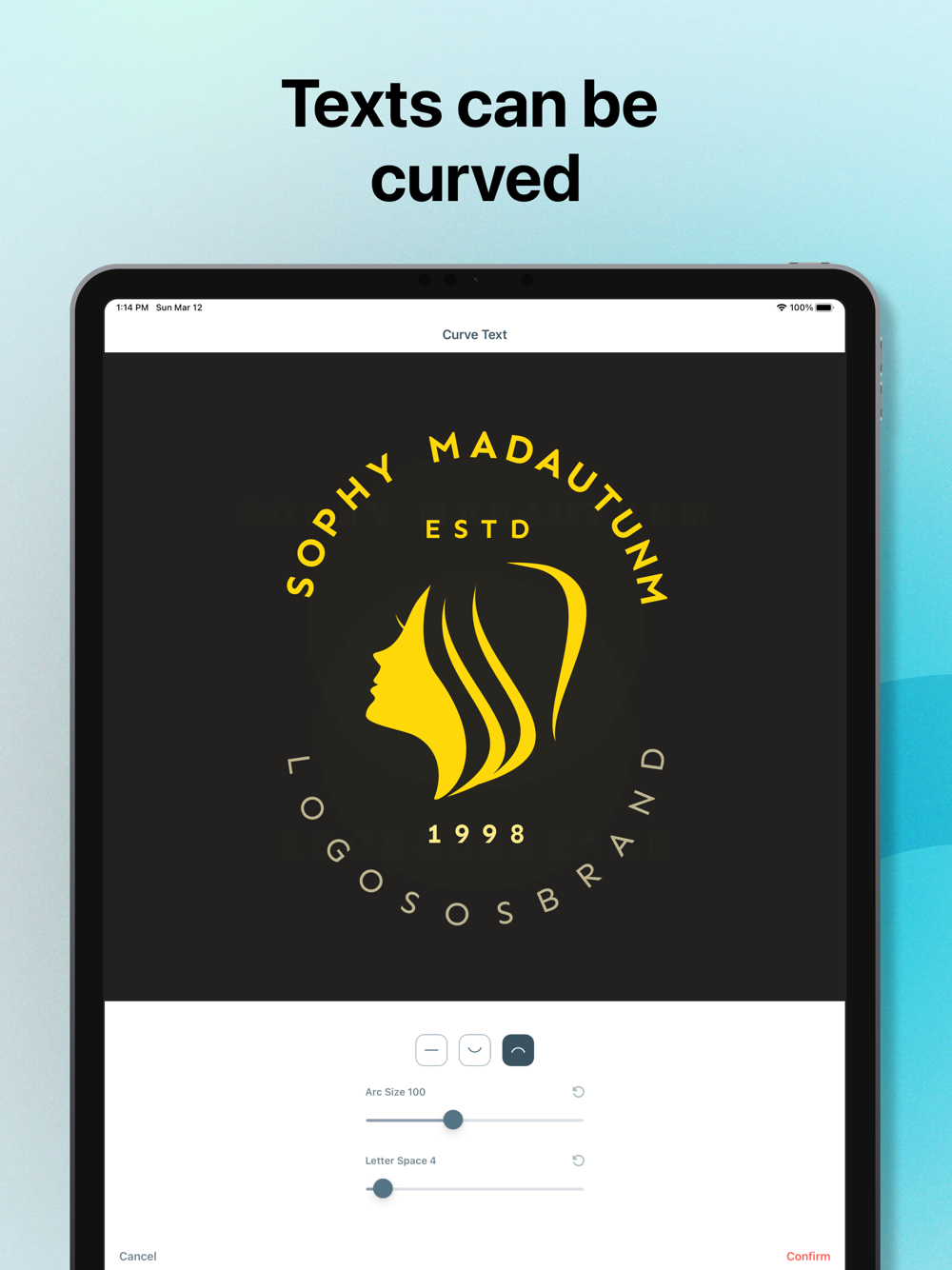 Logo Maker SOS can generate different layouts based on your design. It's very convenient for you to pick different types of logos. For example, you use a wordmark template to edit, and you want to test adding a symbol or adding a frame to the wordmark. You don't need to adjust the position or size of any element. Logo Maker SOS will generate all designs for you automatically. Logo Maker SOS allows you to create logos, icons, symbols, watermarks, or any type of professional design with a tap.