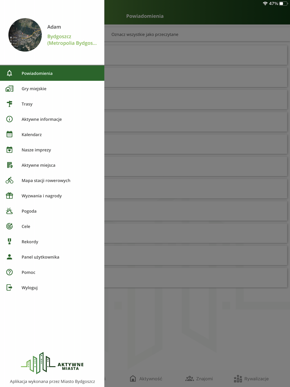 Pomysłodawca, miasto Bydgoszcz pomyślał również o systemie motywacyjnym w aplikacji, gdzie zdobywasz specjalne odznaki za najdłuższy przebyty dystans, najlepsze tempo, czy największą ilość spalonych kalorii.