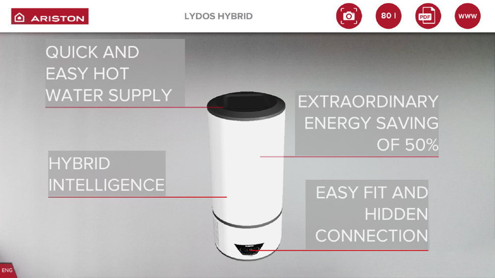 With Lydos Hybrid in augmented reality, you will have the opportunity to have a real image of your electric water heater at any angle without having to purchase and install it. Print and stick the marker at the intended location of Lydos Hybrid and look at it through the screen of your smartphone or tablet. You will then see three-dimensional Lydos Hybrid on the selected background.